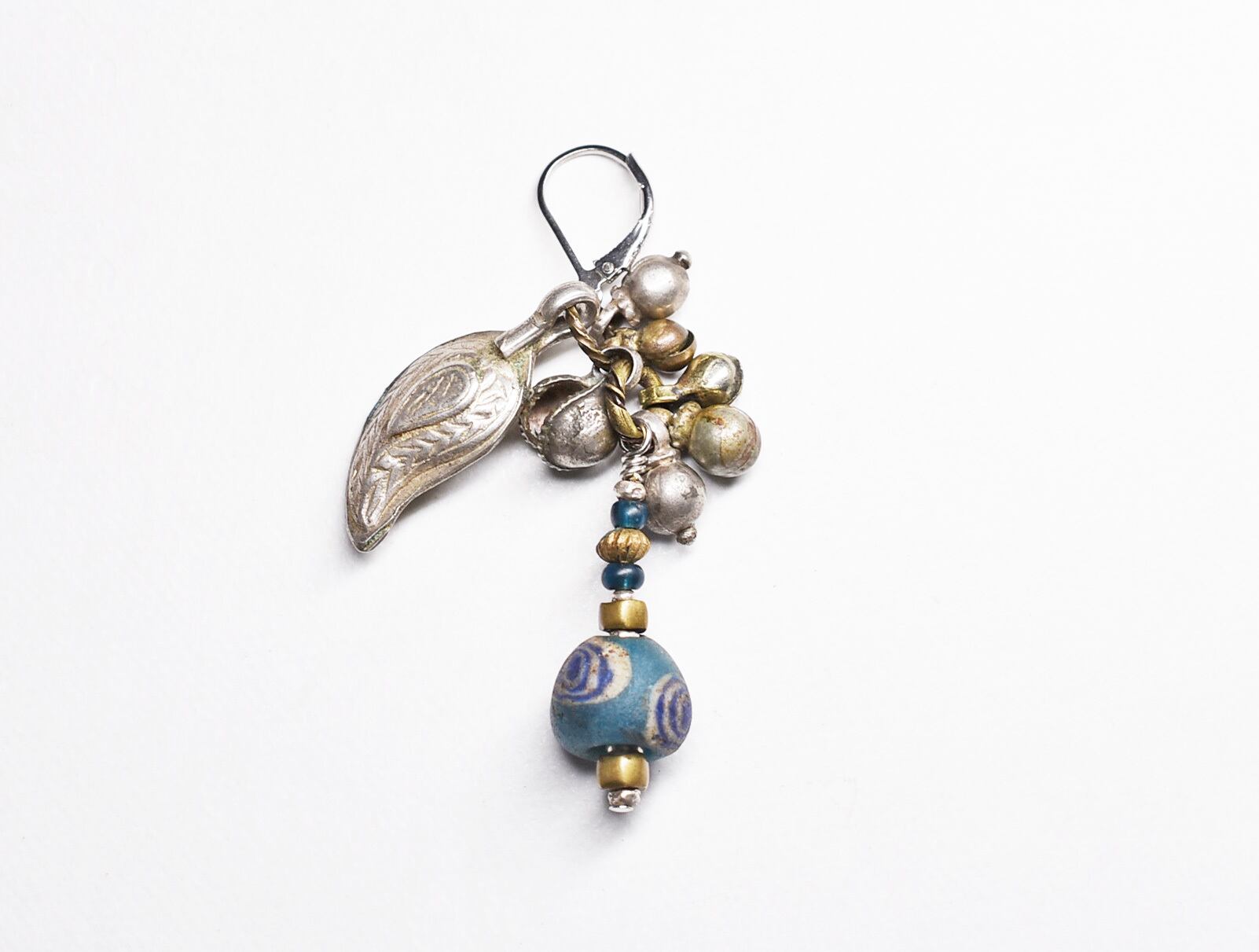 とても美しい中世のアイビーズと、数種類の鈴、アフガニスタンのoldシルバーを繋いだ片耳のピアスです。