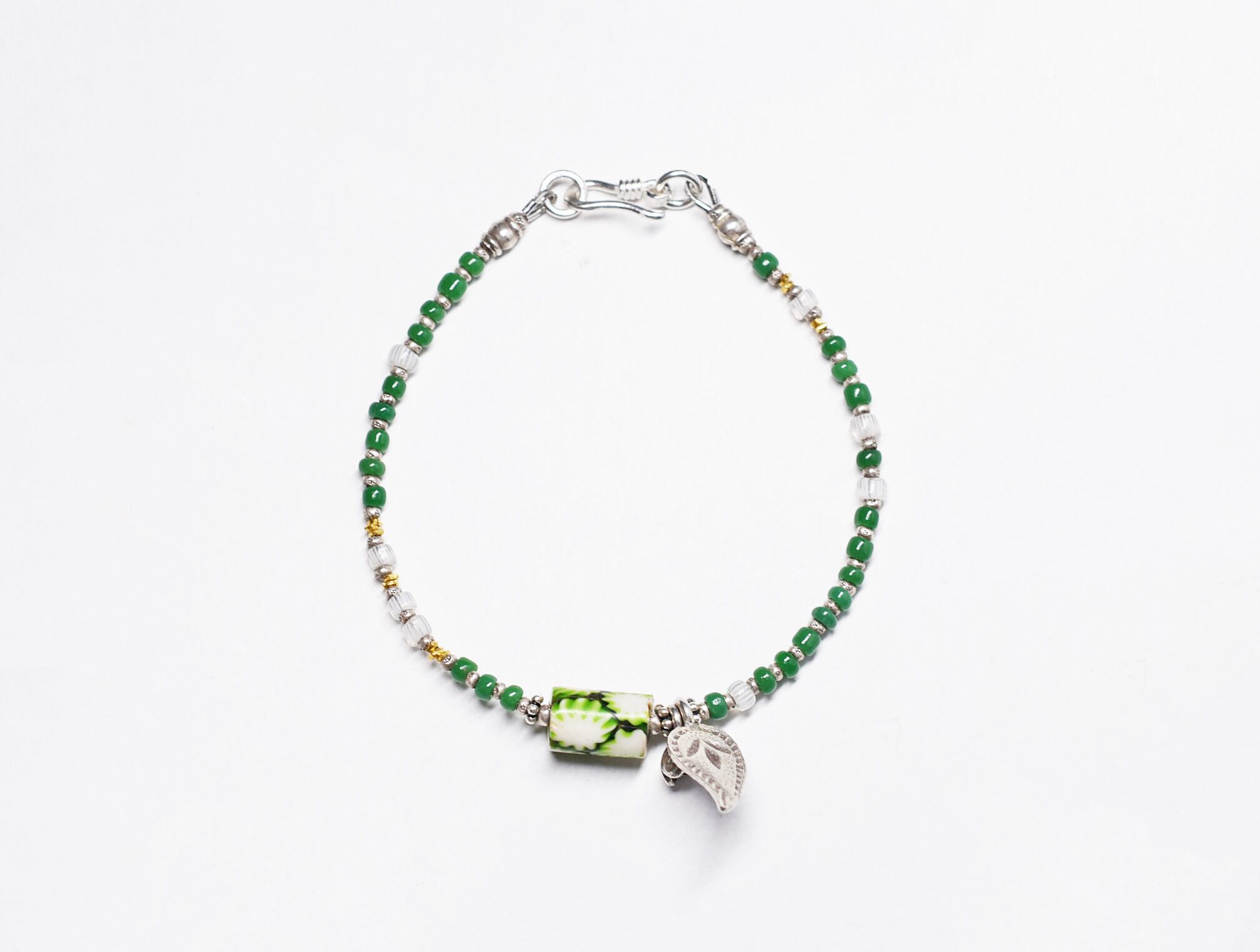 小さなお花とペイズリーのようなチャーム、小さなビーズ、留め金などはカレンシルバーです。