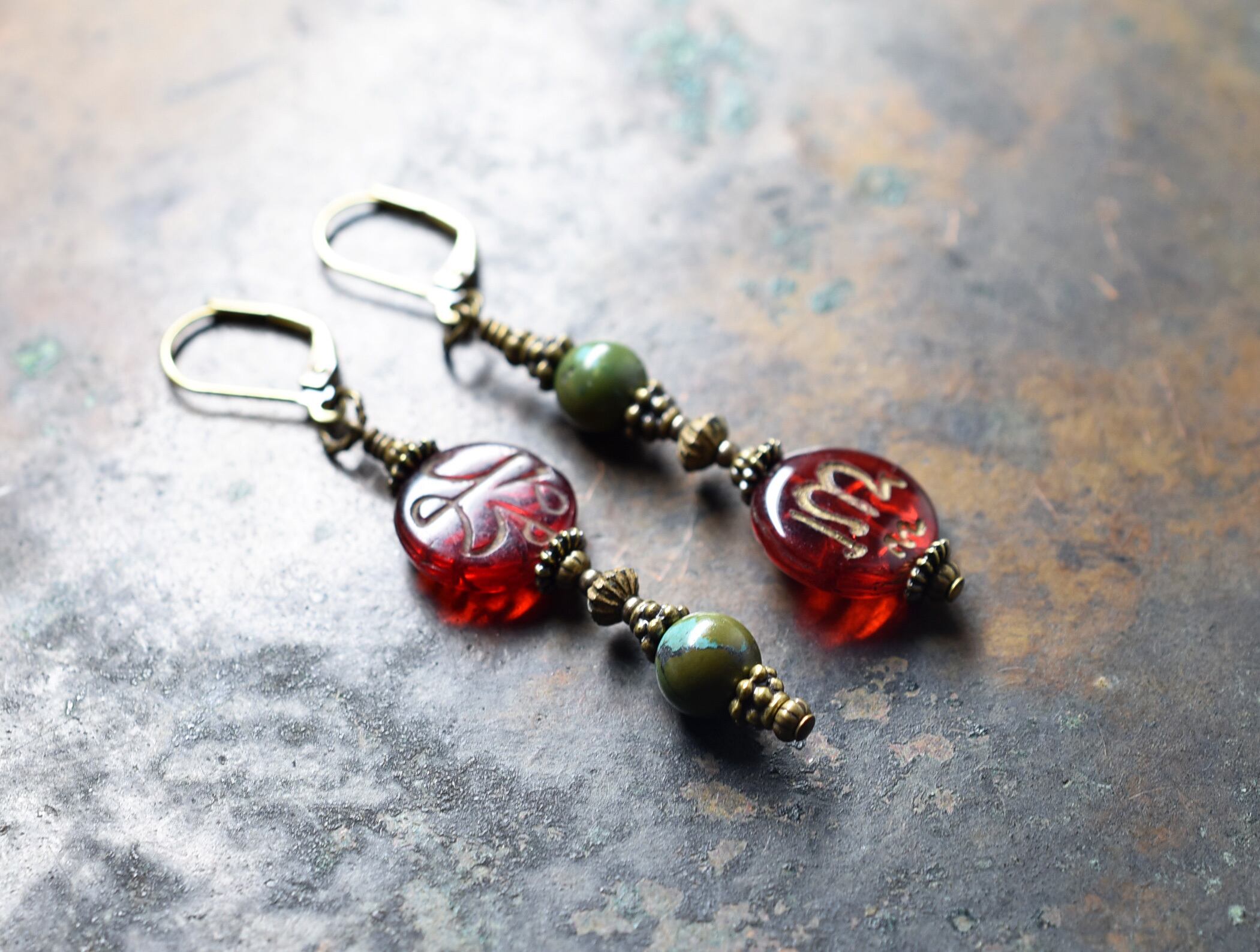 聖者のビーズ(20世紀初頭)はボヘミア製です。やや暗めな赤色ですが、光の下では吸い込まれるような美しい赤色になります!