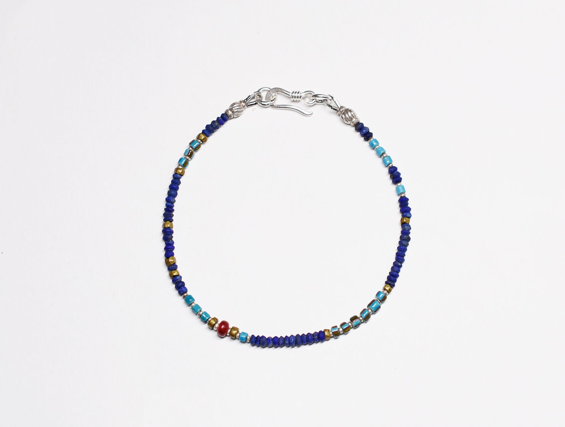 小さなラピスラズリと、3種類のホワイトハーツ、oldオリッサブラスなどを繋げたブレスです。