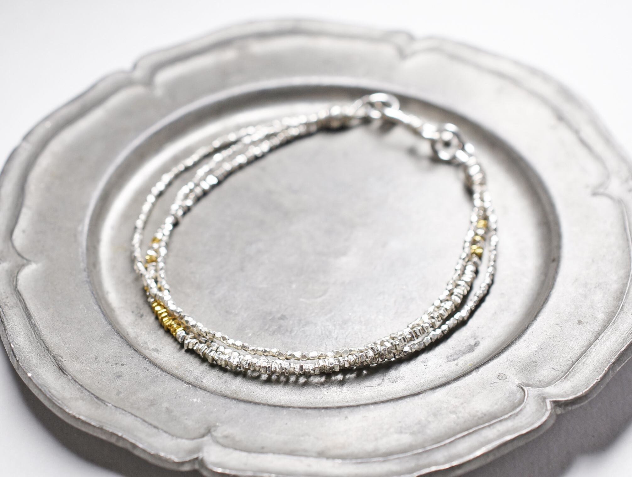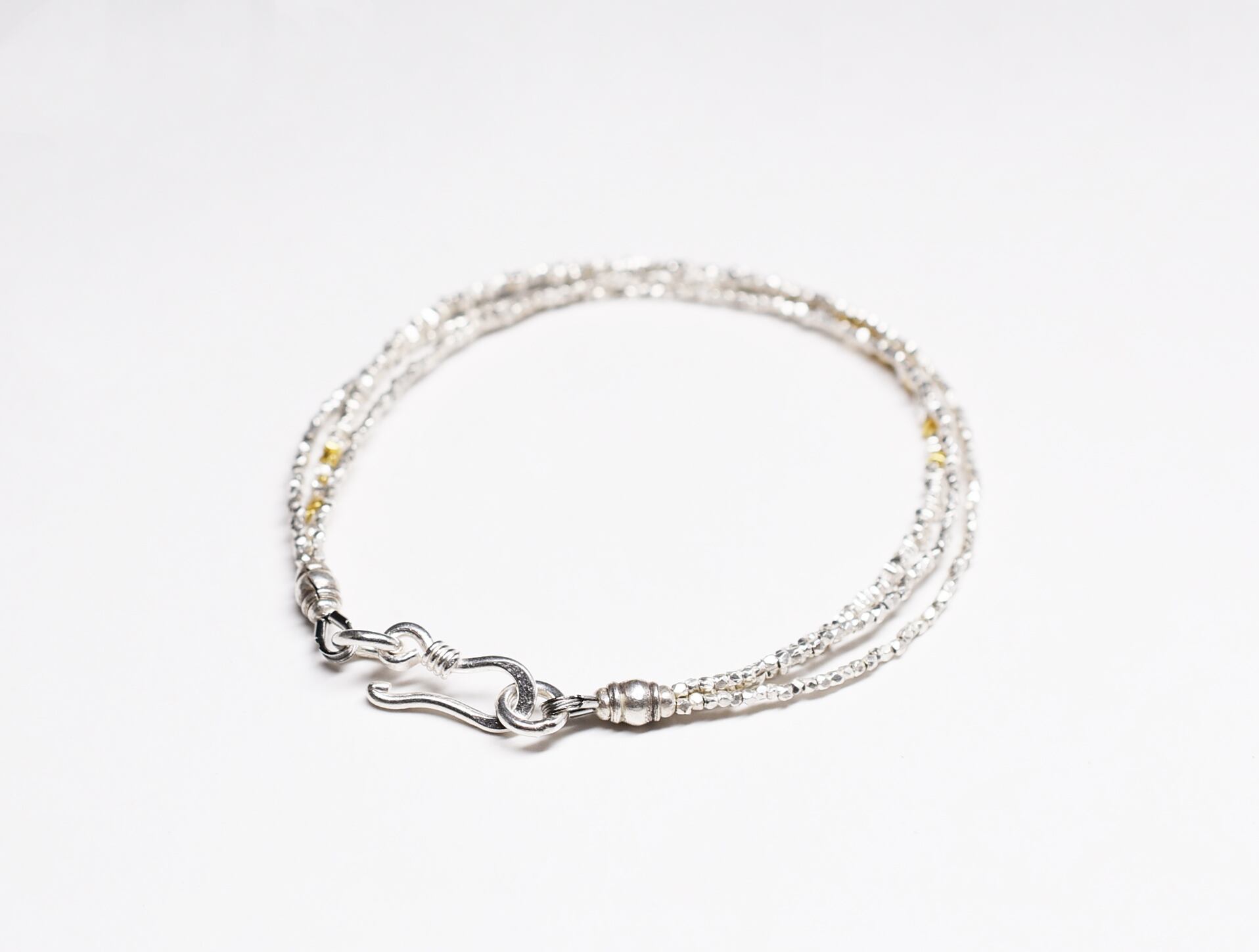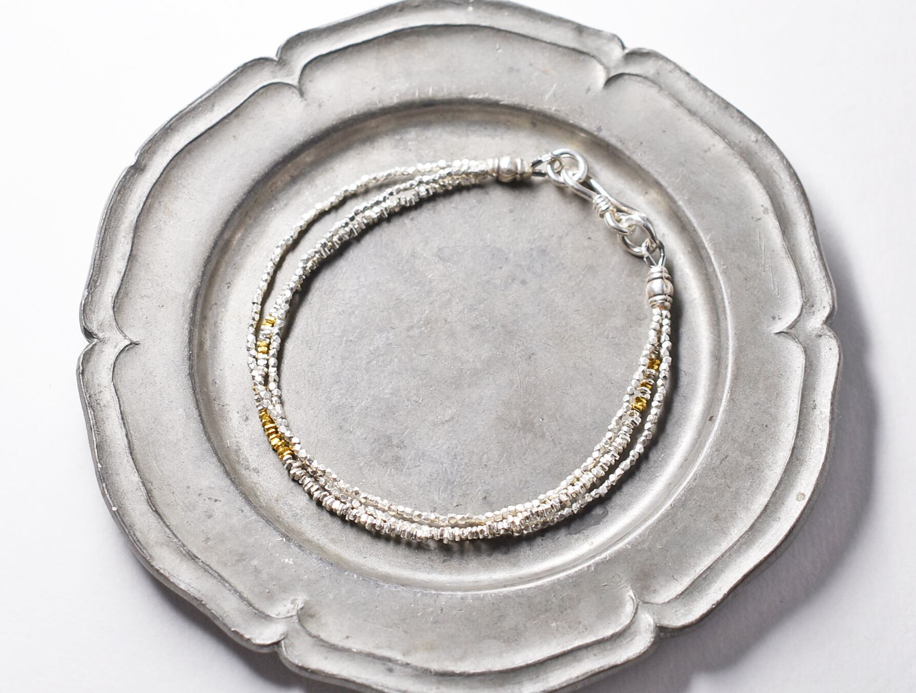 煌めくカレンシルバービーズの3連ブレス(ゴールド入り)
