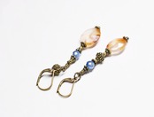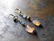 カーネリアンとカイヤナイト、松ぼっくりブラスを繋いだアンシメトリーなピアスです。