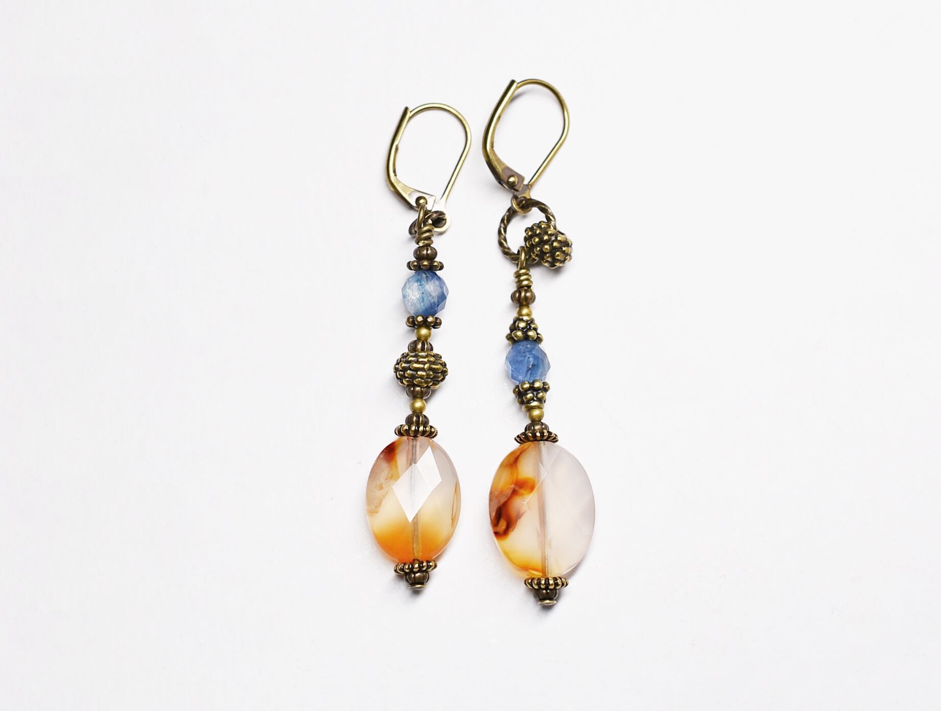 カーネリアンとカイヤナイト、松ぼっくりブラスのアンシメトリーピアス