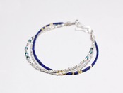 小さなラピスラズリと、小さなカレンシルバービーズを繋いだ3連のびブレスです。