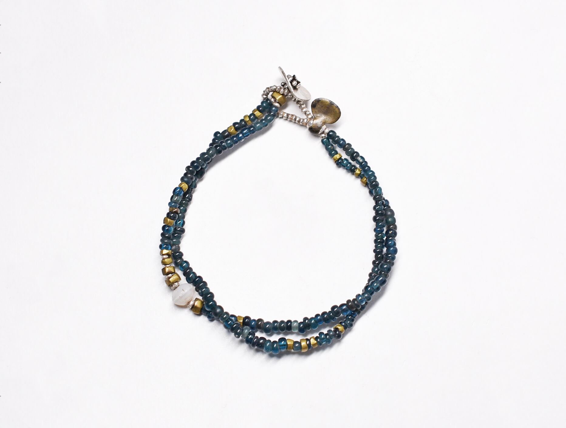 古代と瑪瑙とインディゴブルービーズ、oldオリッサブラスの2連ブレス