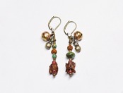 蛇骨とターコイズ、金赤ホワイトハーツ、ルドラクシャ、鈴のアンシメトリーピアス