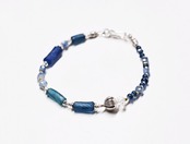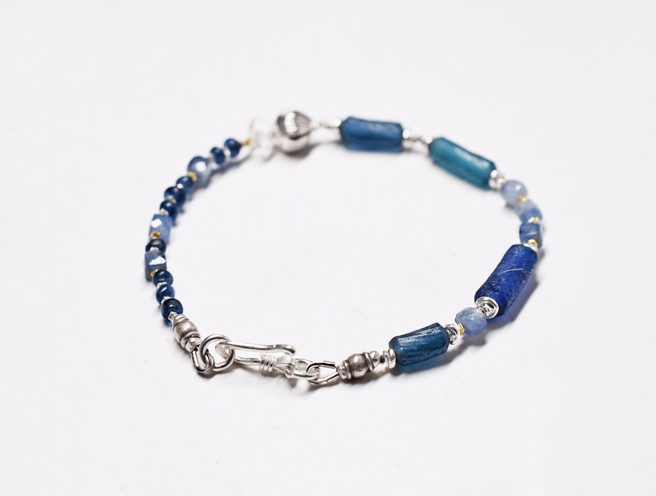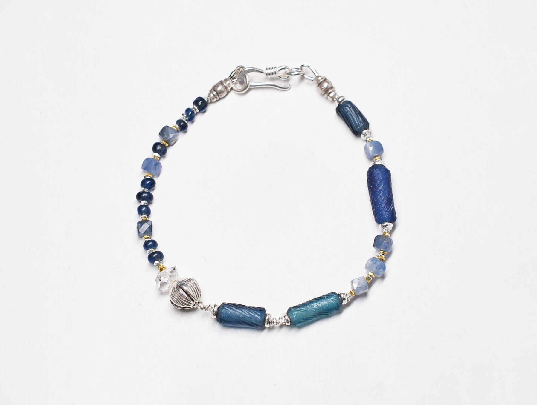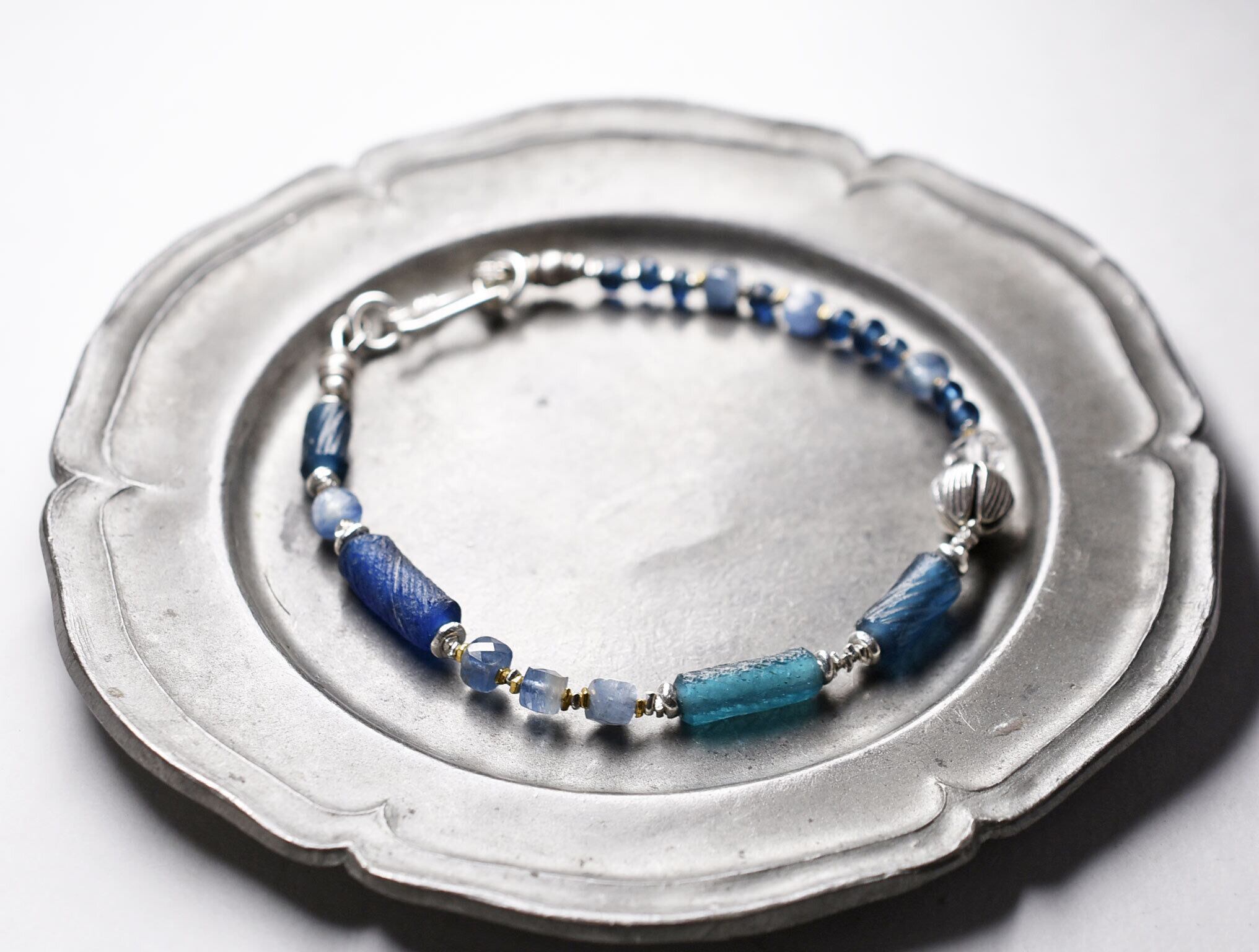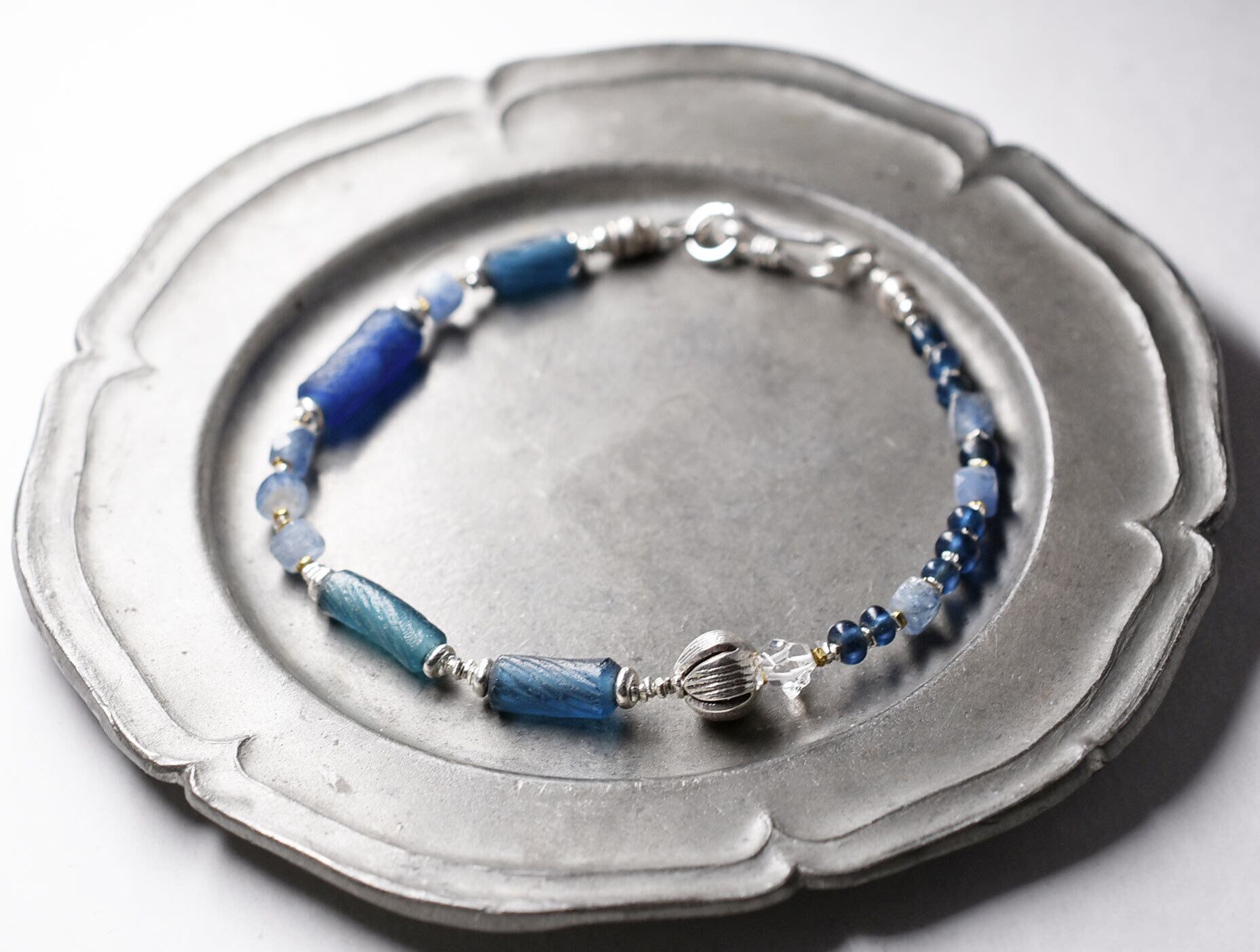ローマングラスとハーキマーダイヤモンド、カイヤナイト、蕾カレンシルバーのブレス