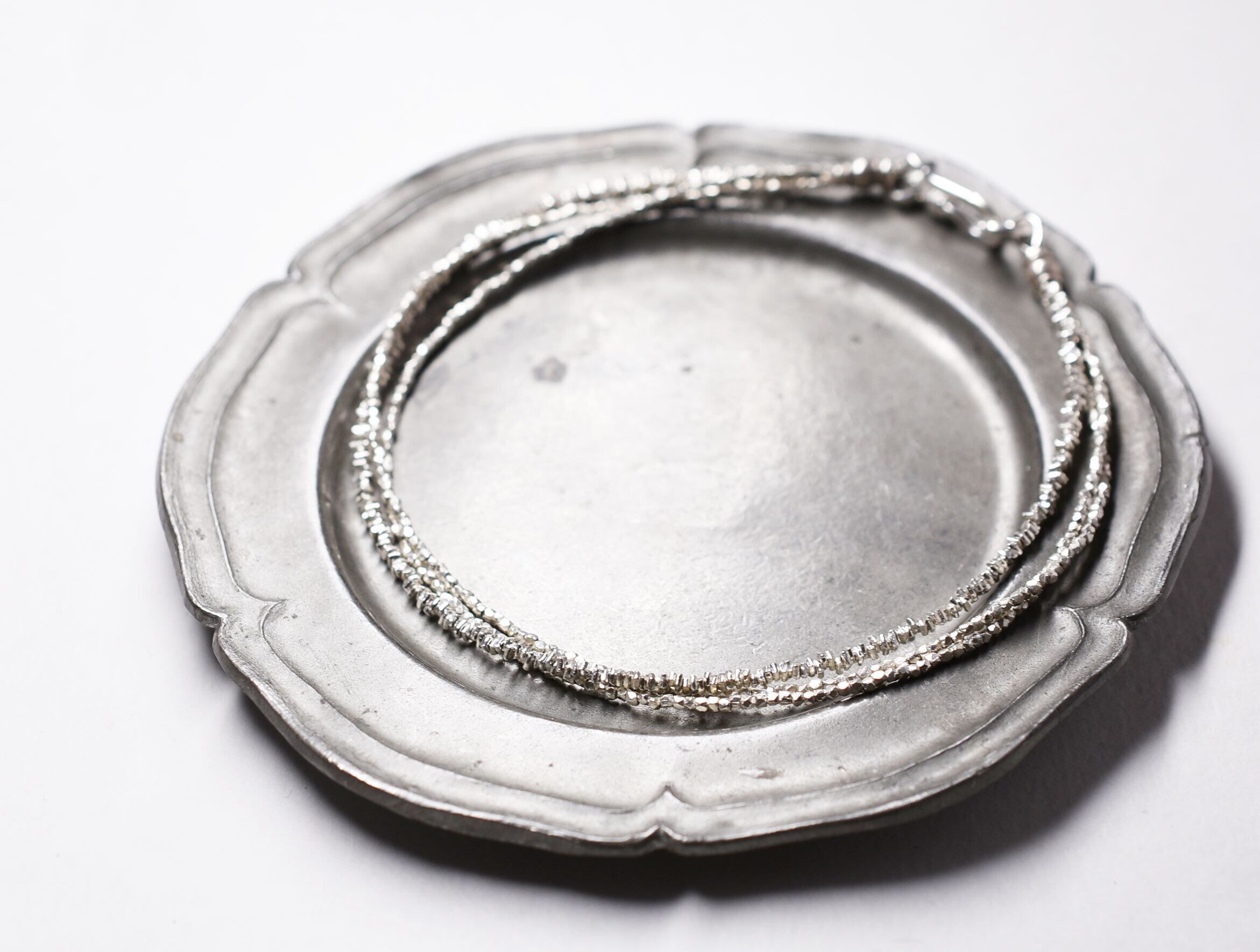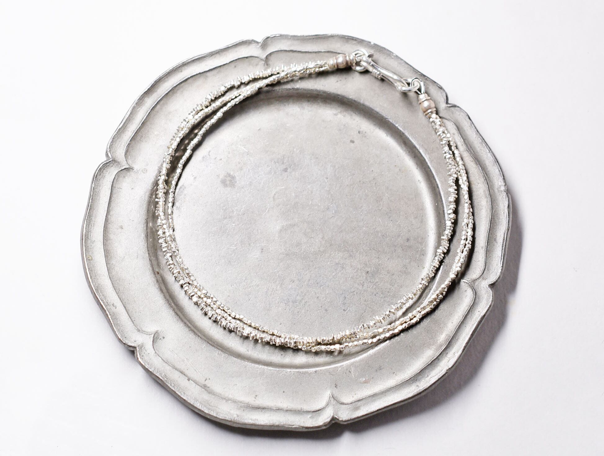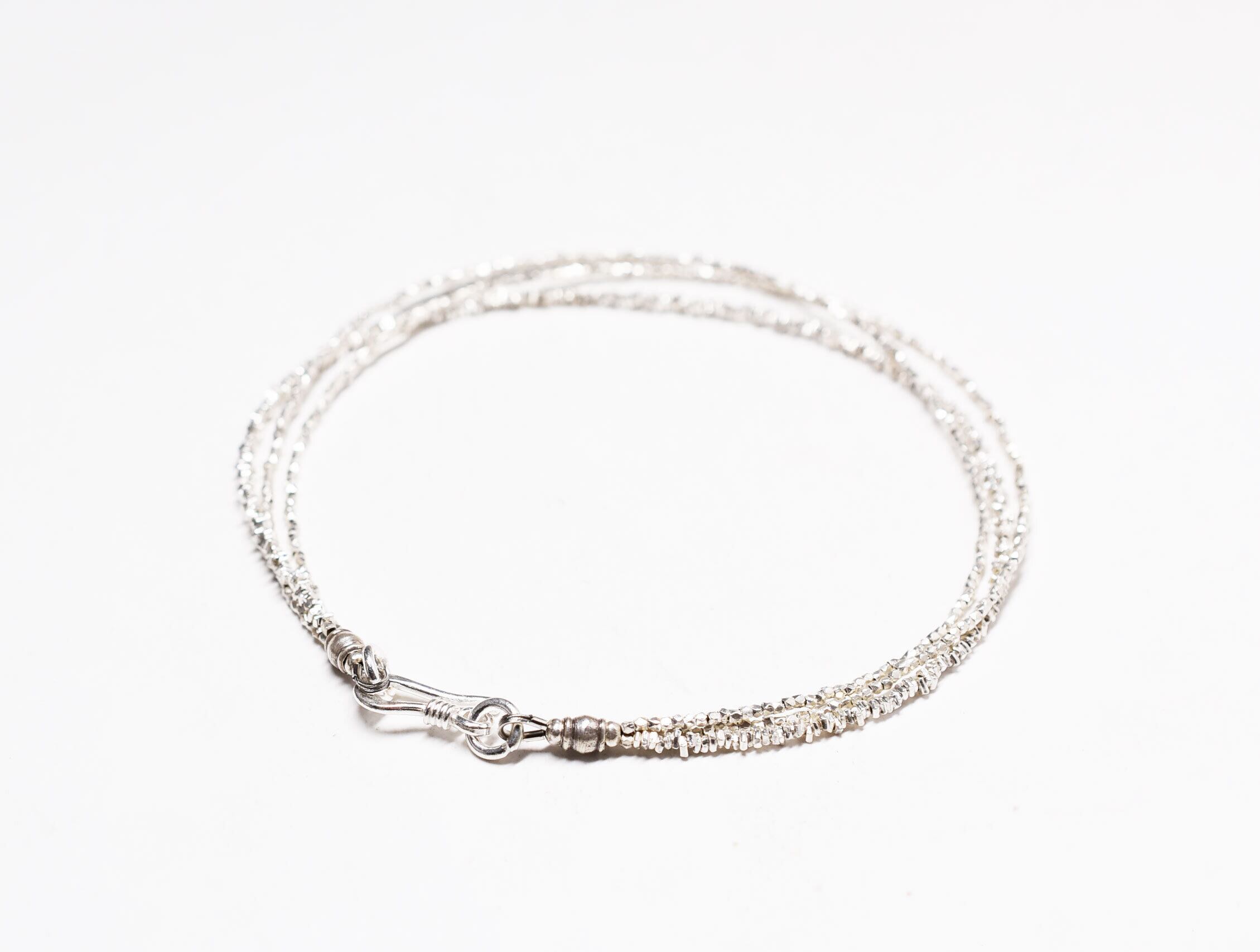 小さなカレンシルバービーズを3連に繋いだアンクレットです。