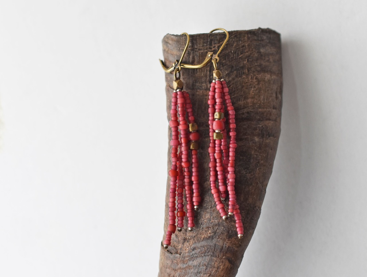 様々な金赤ホワイトハーツを贅沢に使った4連のピアスです。
