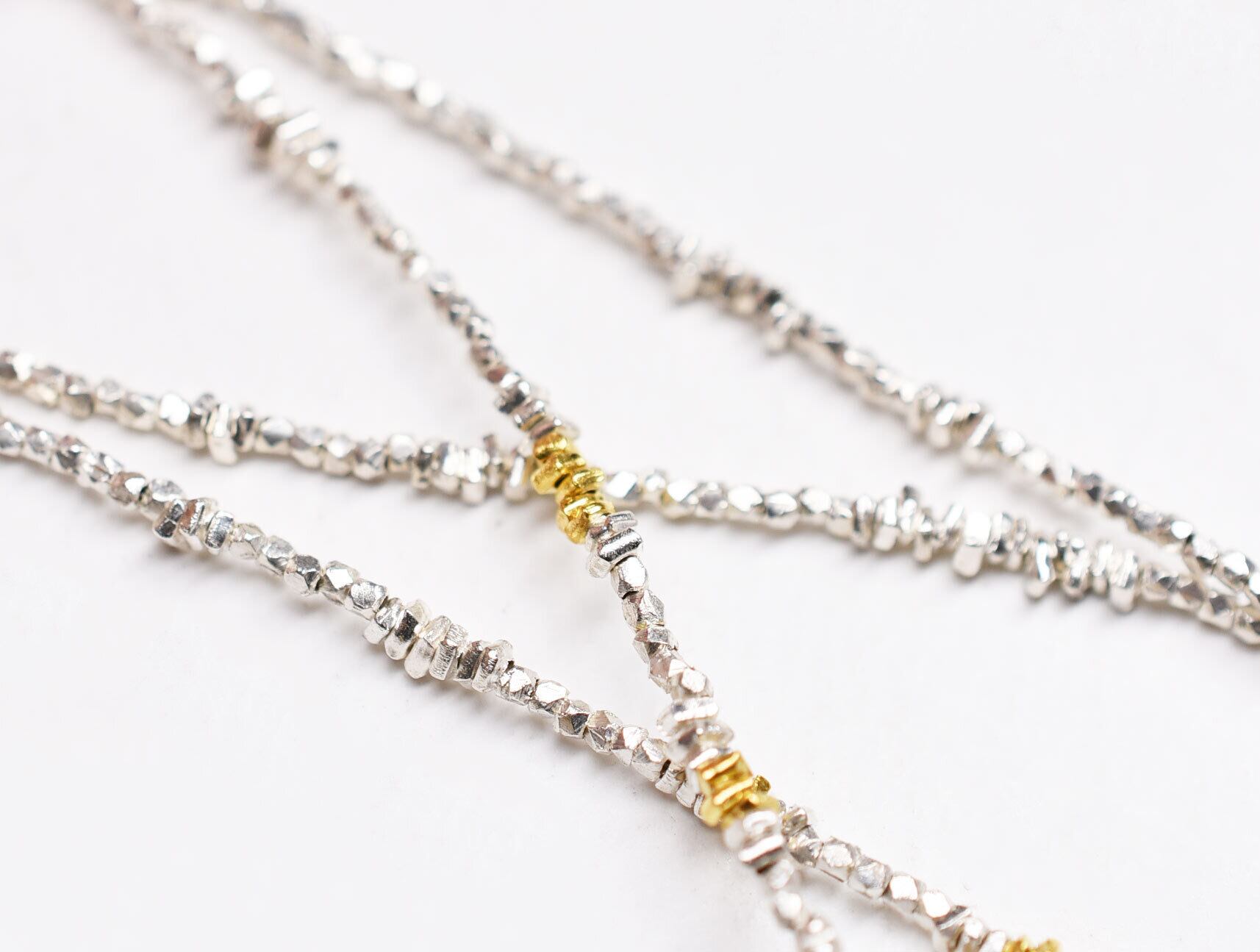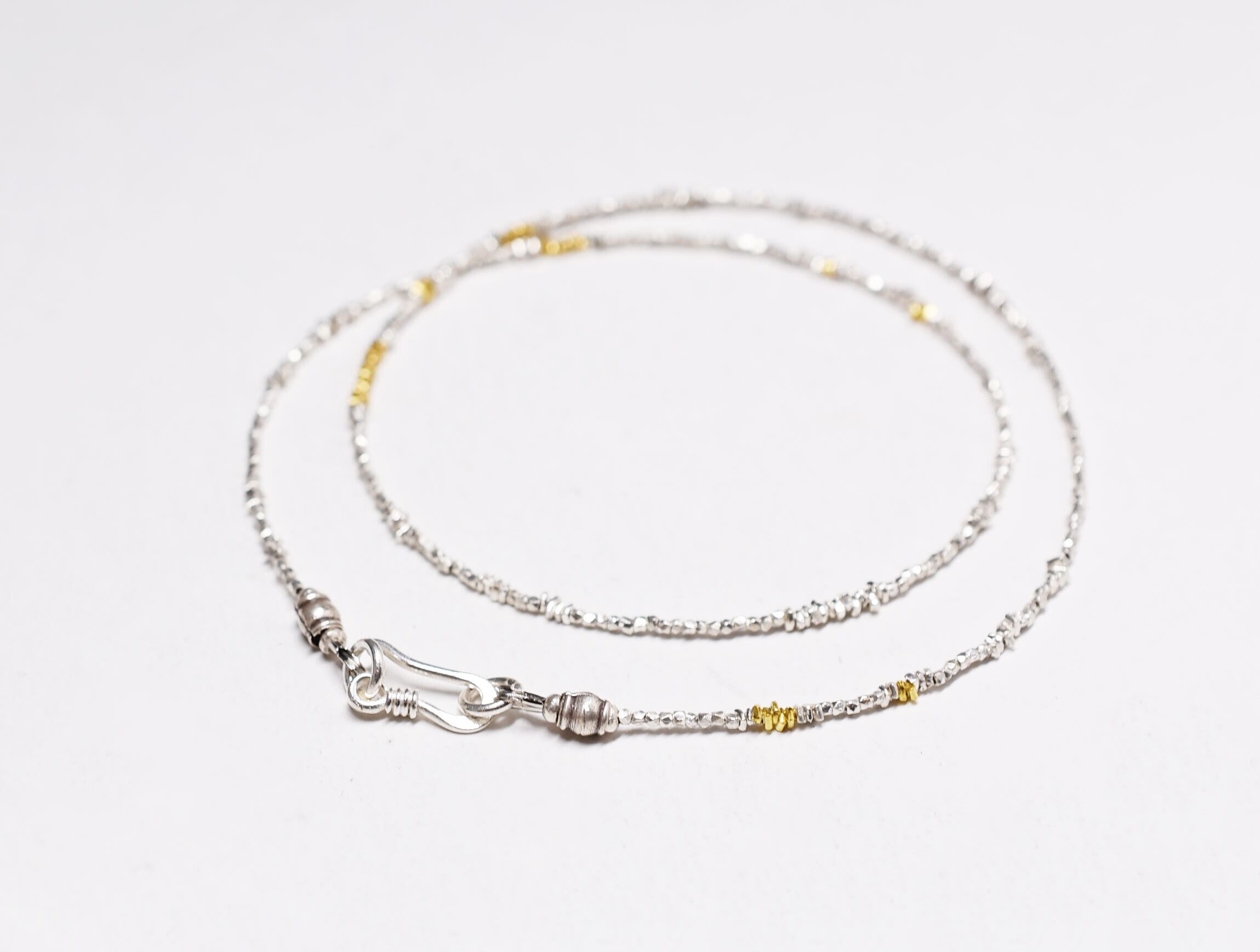 煌めくカレンシルバービーズのシンプルネックレス(ゴールド入り)