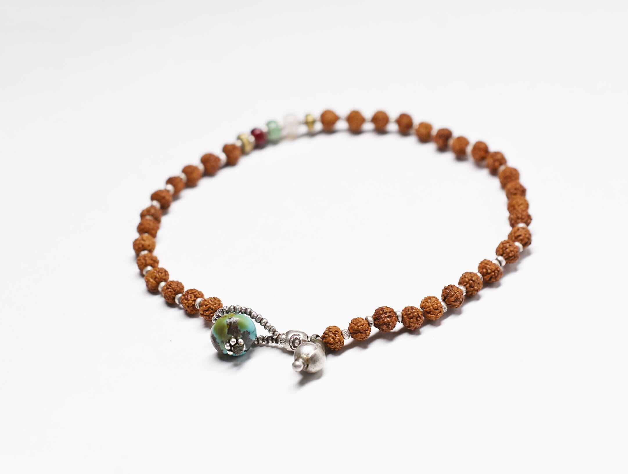 素材:ルドラクシャ、古代瑪瑙、ガラス、oldシルバー、カレンシルバー、真鍮、ロウビキ紐