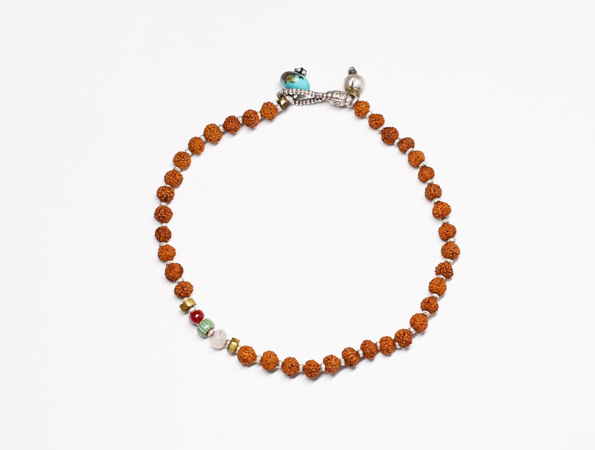 小さなルドラクシャと、古代瑪瑙、シェブロンビーズ、ホワイトハーツ、oldオリッサブラスなどを繋いだアンクレットです。