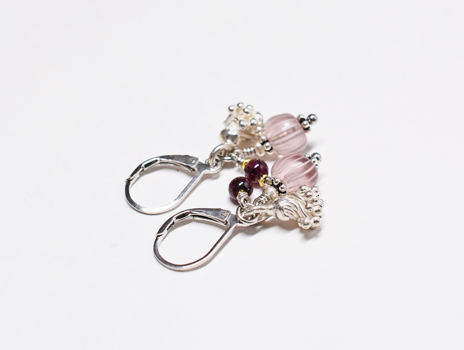 蕾カレンシルバーとグーズベリー、ガーネットのピアス(撫子)