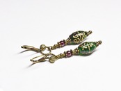 ダークグリーンとワインレッド、鈍い金色のコントラストで高貴な雰囲気を漂わせるピアスです。