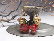 算盤型のアンティークボヘミアビーズと、鈴、インディアンアゲートを繋いだピアスです。