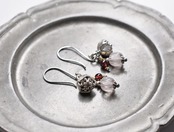 カレンシルバーチャームと、グーズベリー、ガーネットを繋いだピアスです。