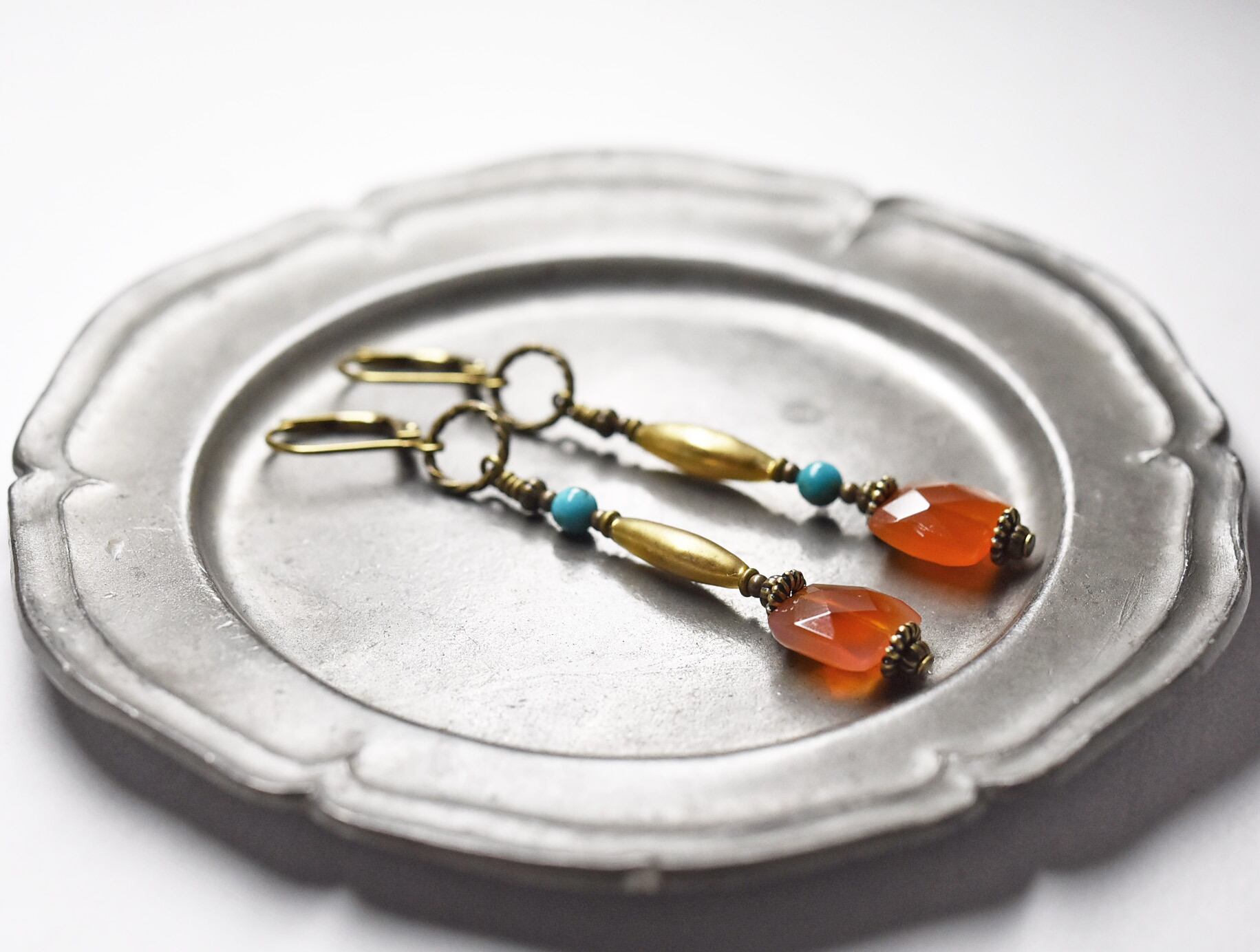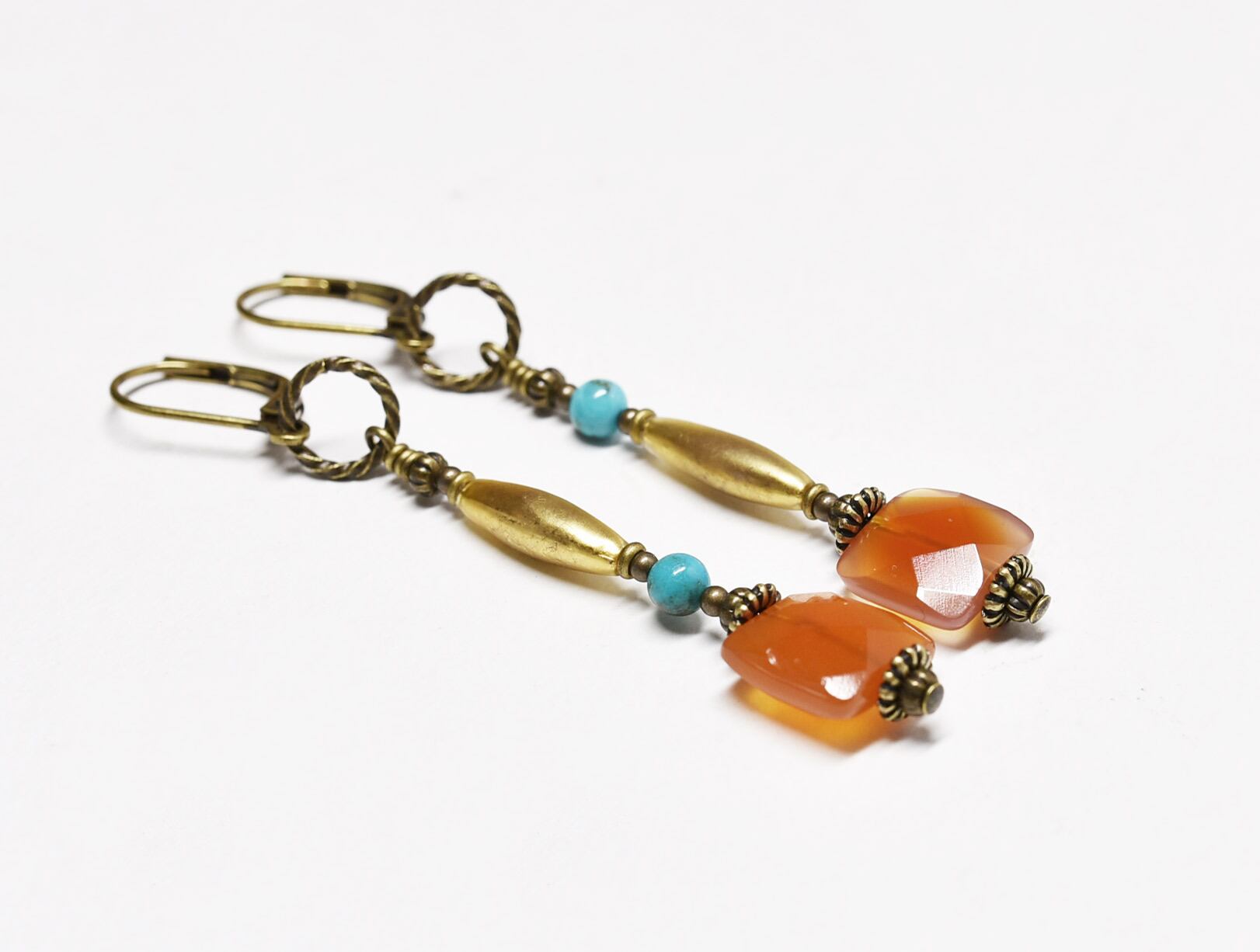 素材:カーネリアン、ガラス、ターコイズ、真鍮
