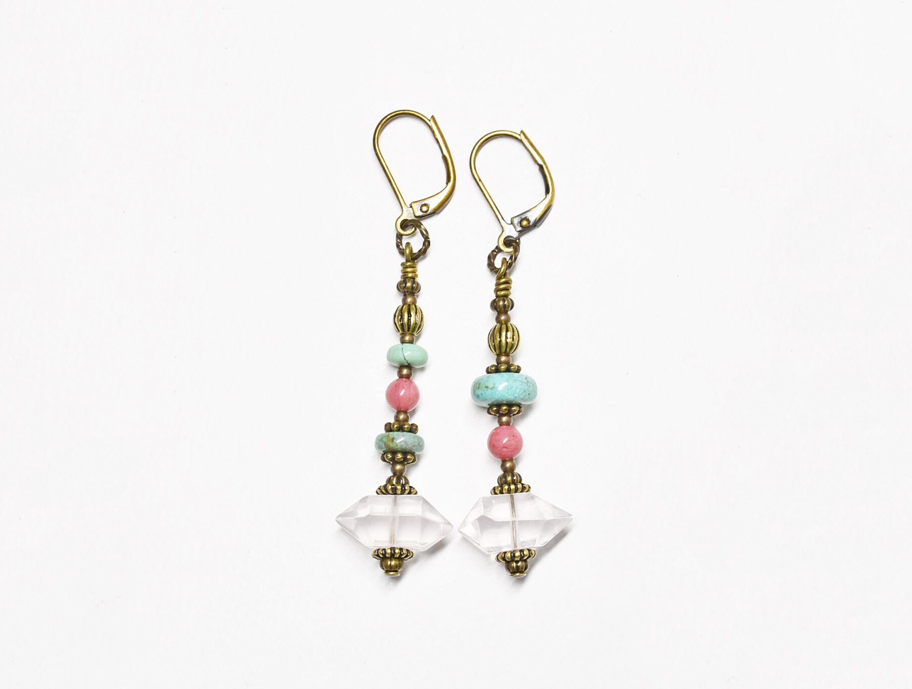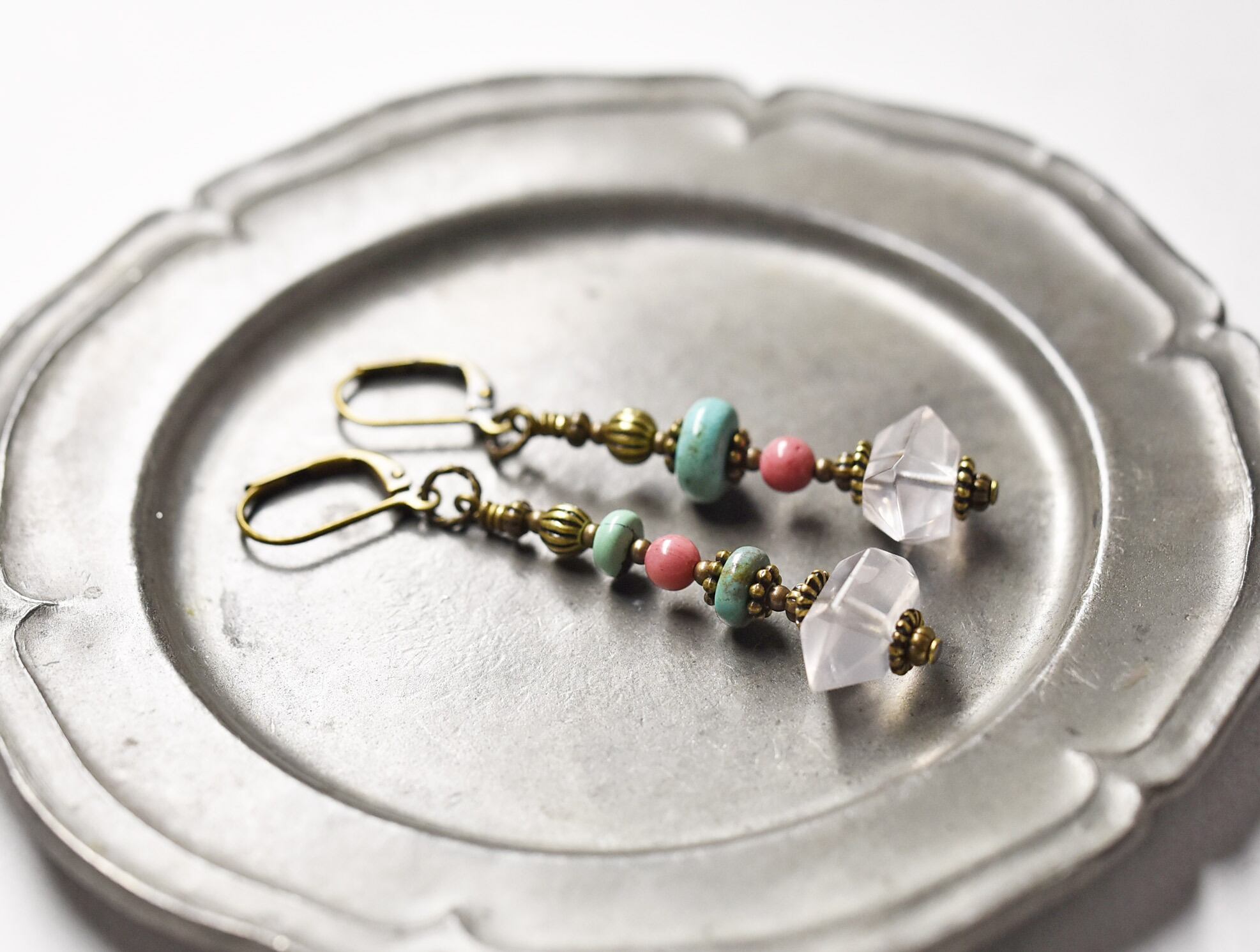 素材:ローズクォーツ、ターコイズ、ロードナイト、真鍮