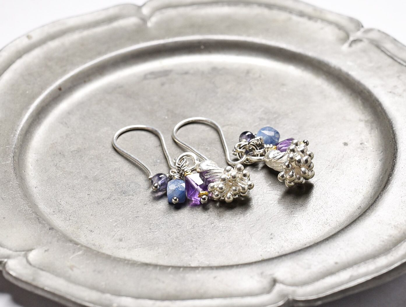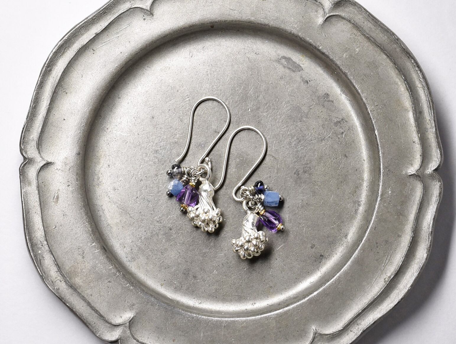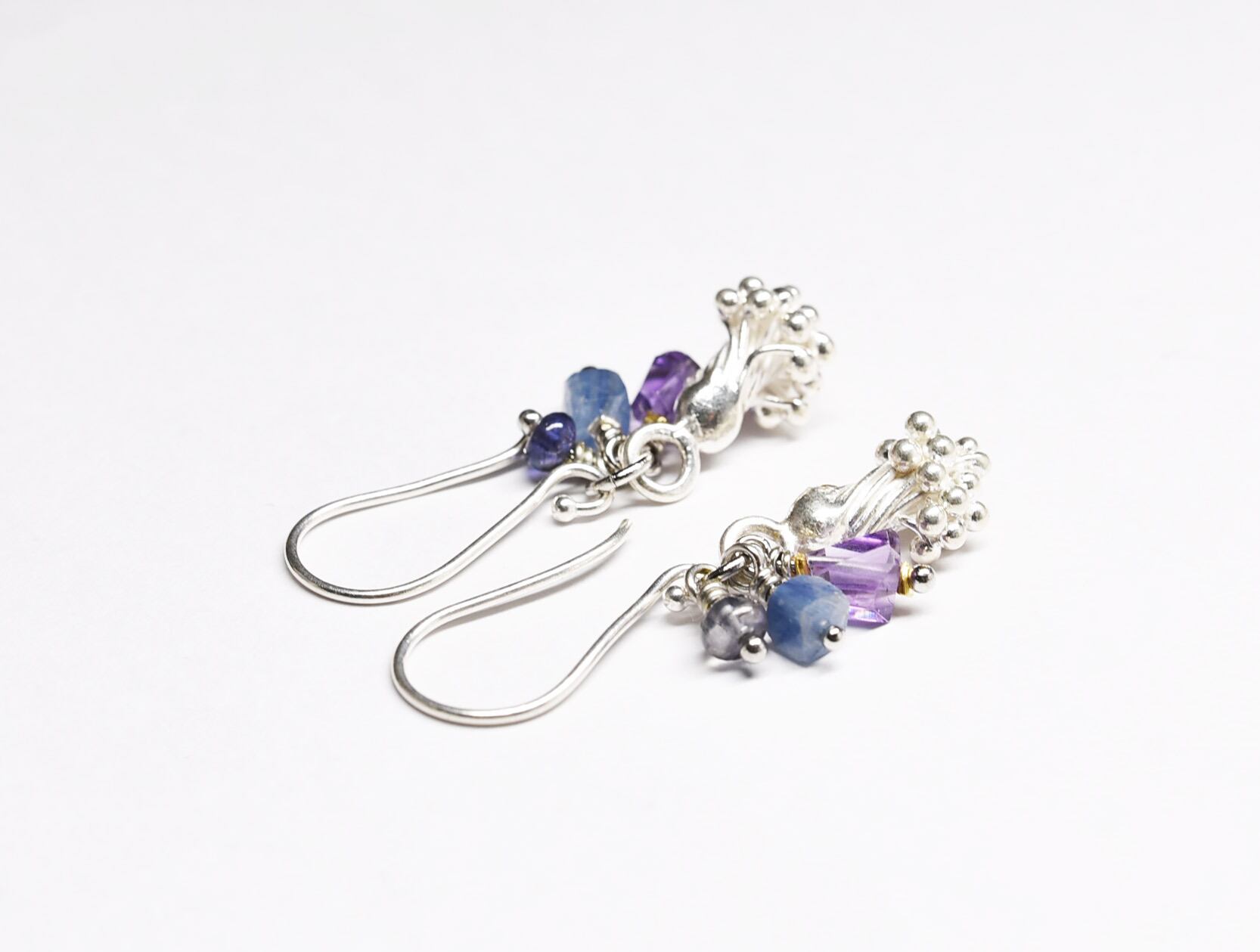 蕾カレンシルバーとアメジスト、カイヤナイト、アイオライトのピアス