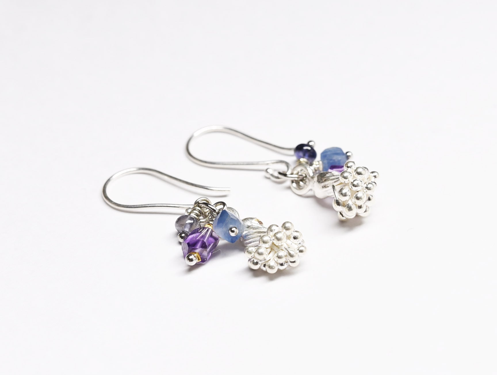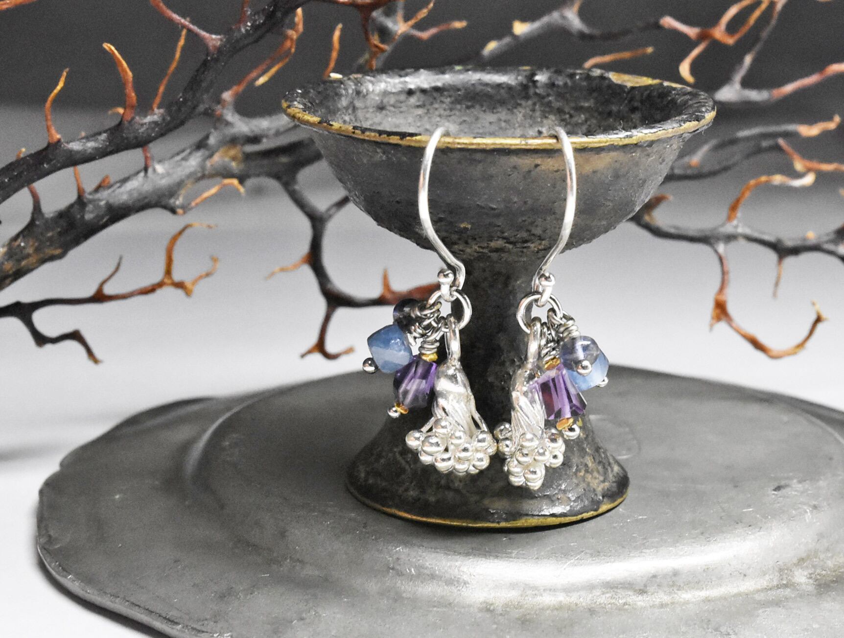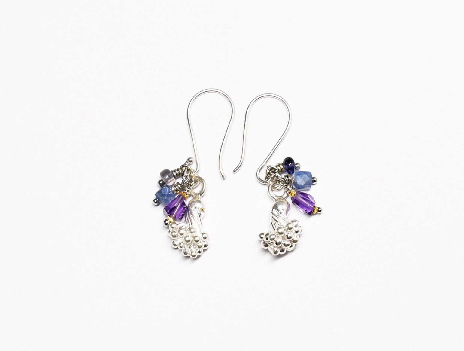 蕾カレンシルバーとアメジスト、カイヤナイト、アイオライトのピアス