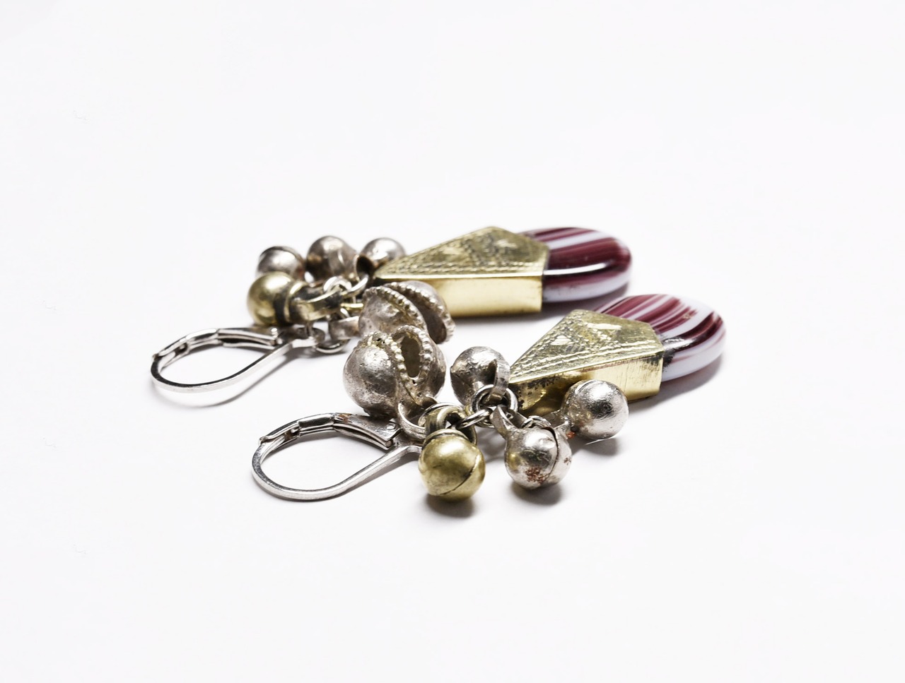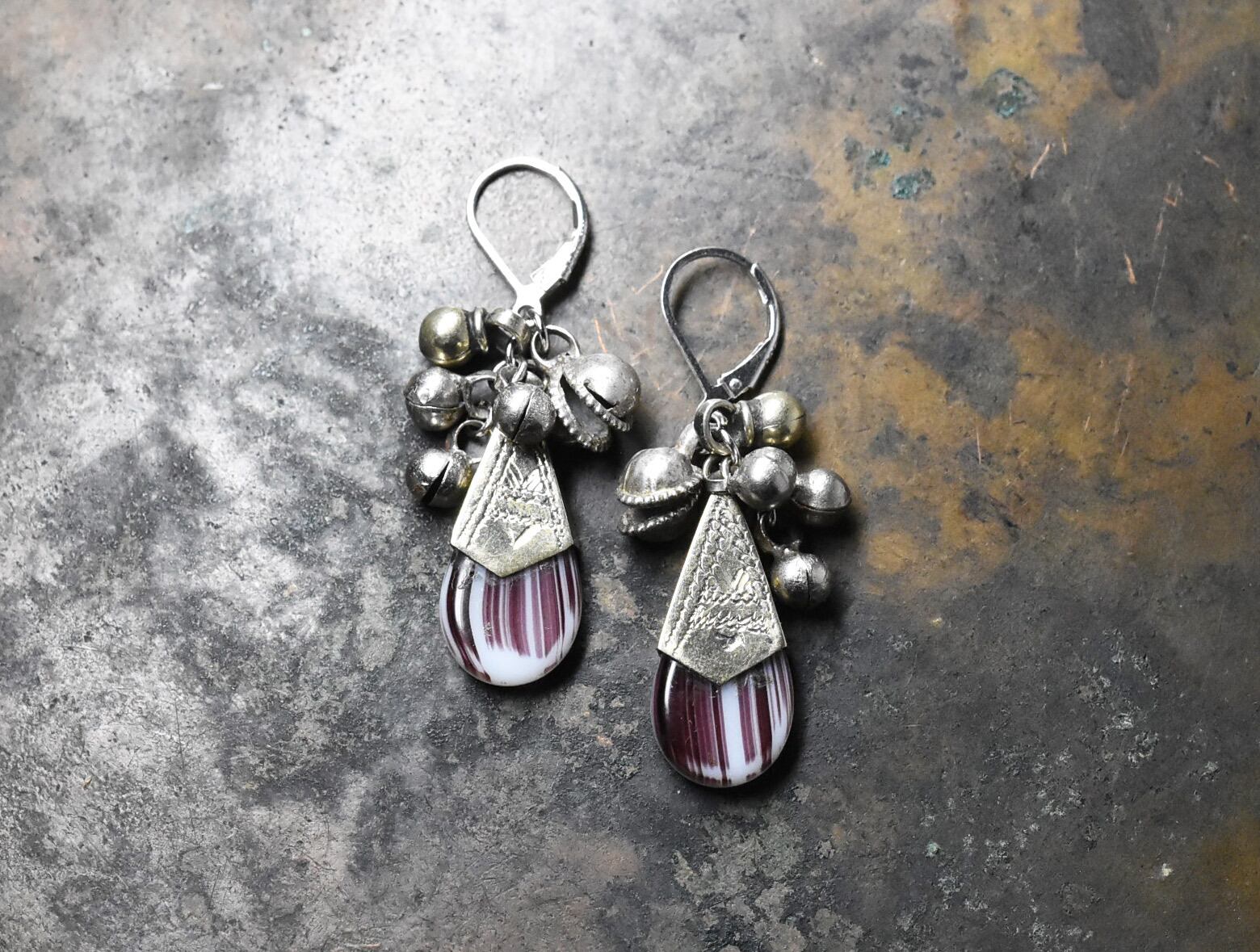 メタル装飾のアンティークビーズに、アフガニスタンの鈴とベルを繋いだピアスです。