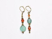 ローマングラスとカーネリアンを繋いだアンシメトリーなピアスです。