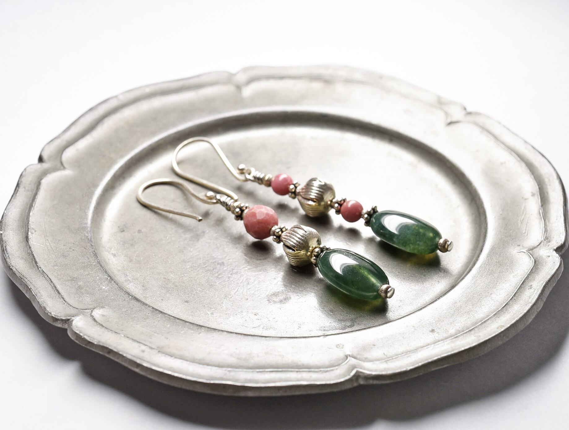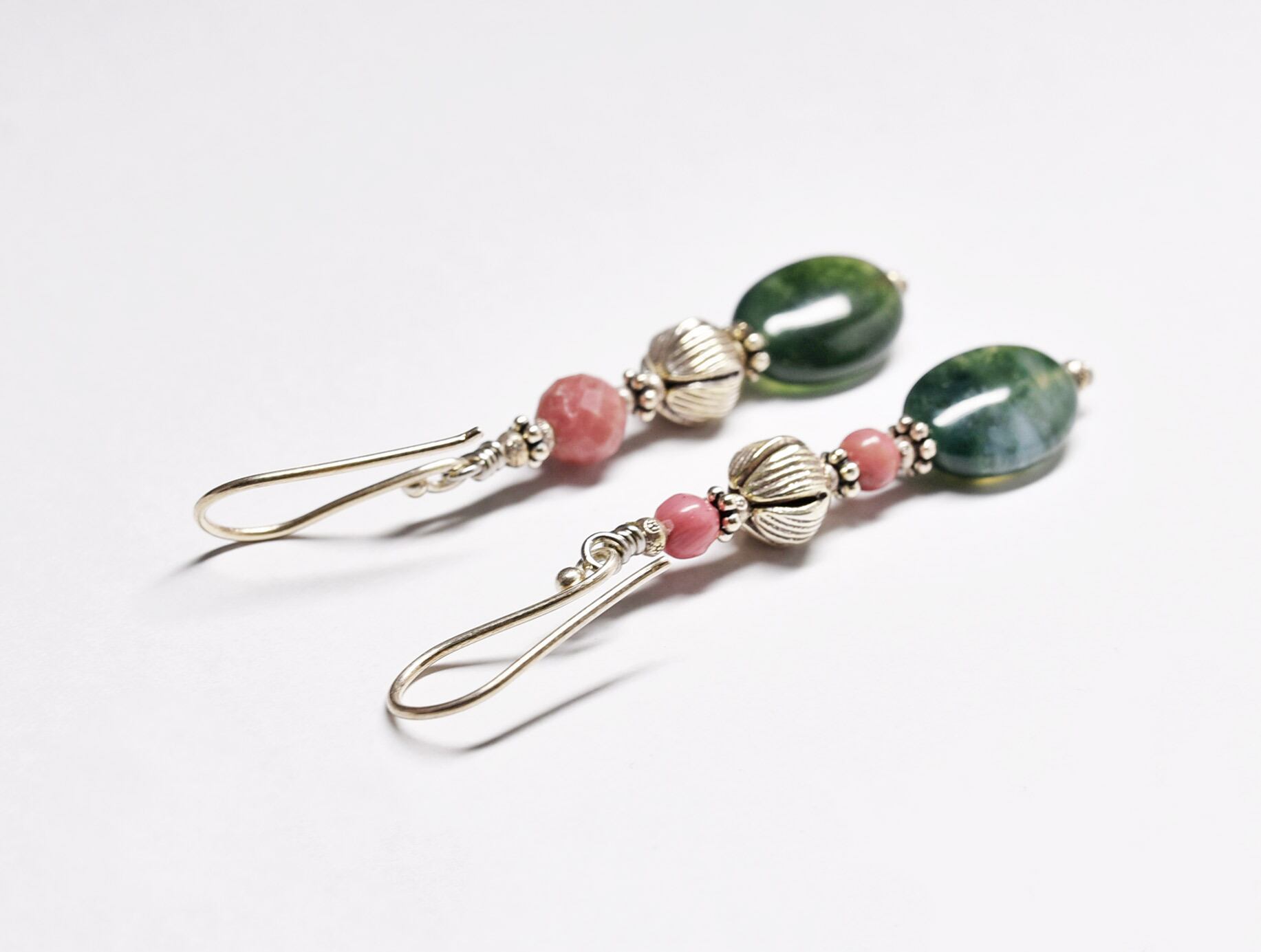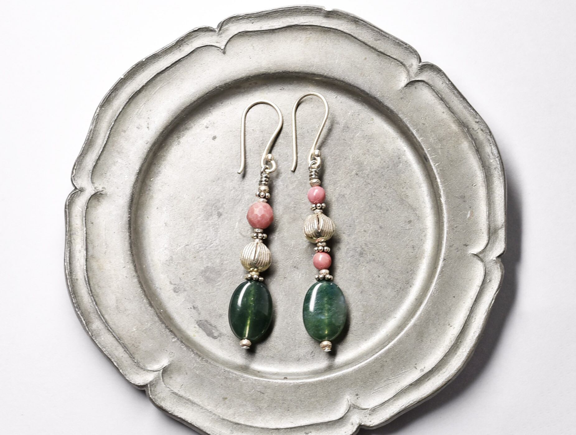 楕円型のビーズはインディアンアゲートです。苔むしたような内包物がとっても魅力的です!