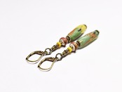 モザイク模様が施されたローマングラスと、アンティークビーズを2粒づつ繋いだピアスです。