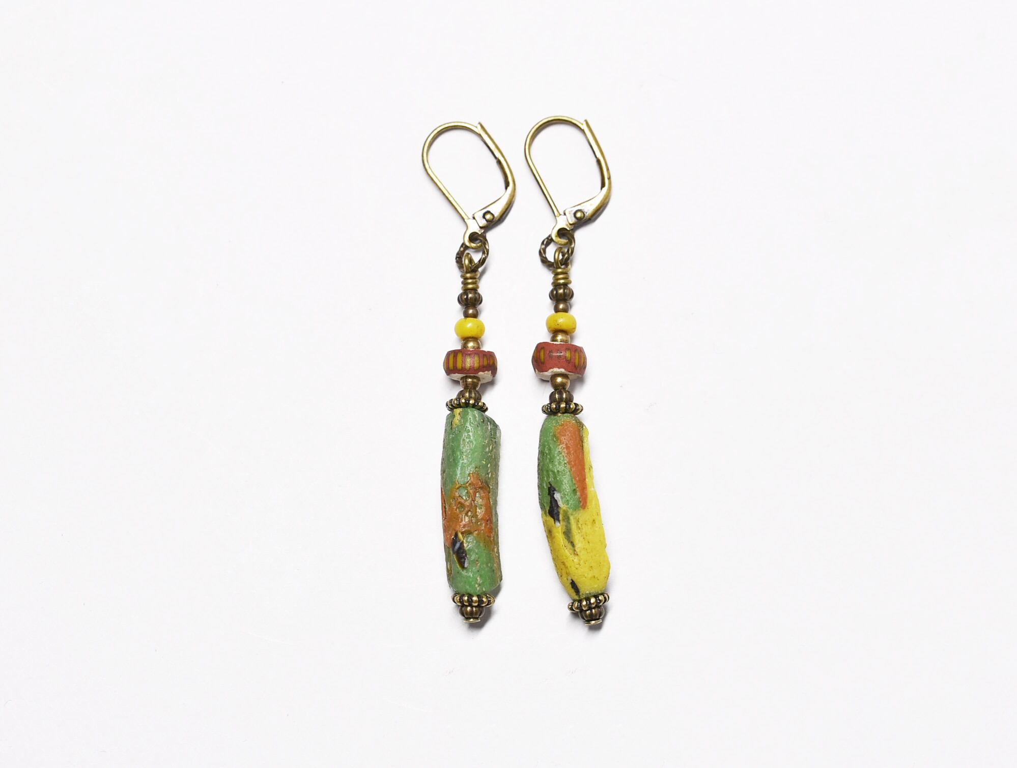 モザイク模様ローマングラスとレアシェブロンビーズのピアス
