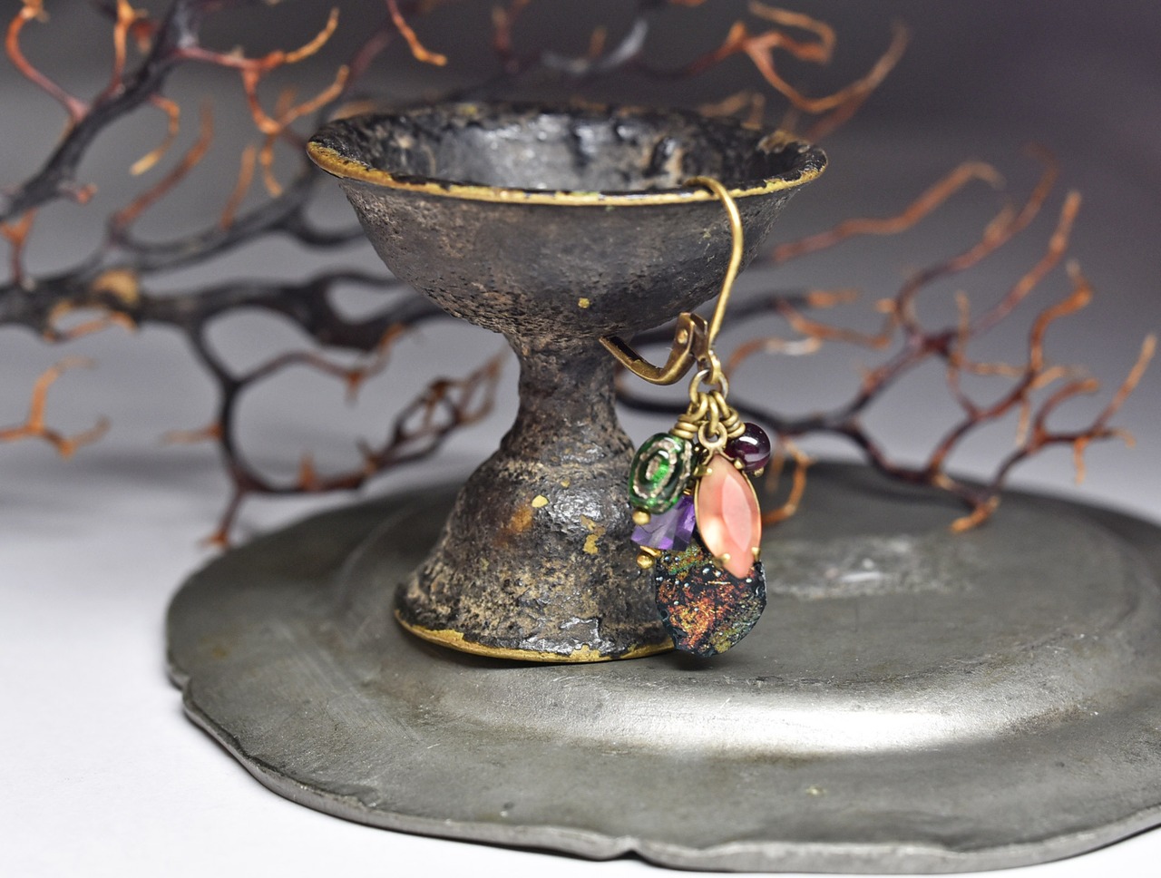 素材:ガラス、ガーネット、アメジスト、真鍮、カレンシルバー