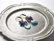 ローマングラスや、天然石の美しさが楽しめる凛とした色合いのピアスです。