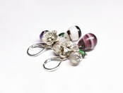 マーブルウエディングビーとお花&蕾カレンシルバー、ラブラドライトとアメジストのピアス