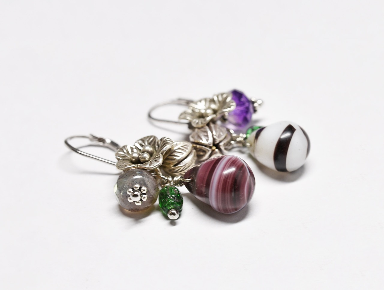 素材:カレンシルバー、ラブラドライト、アメジスト、ガラス