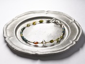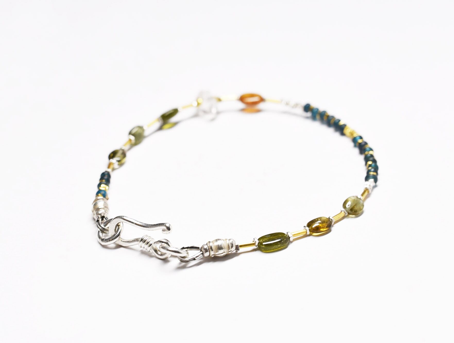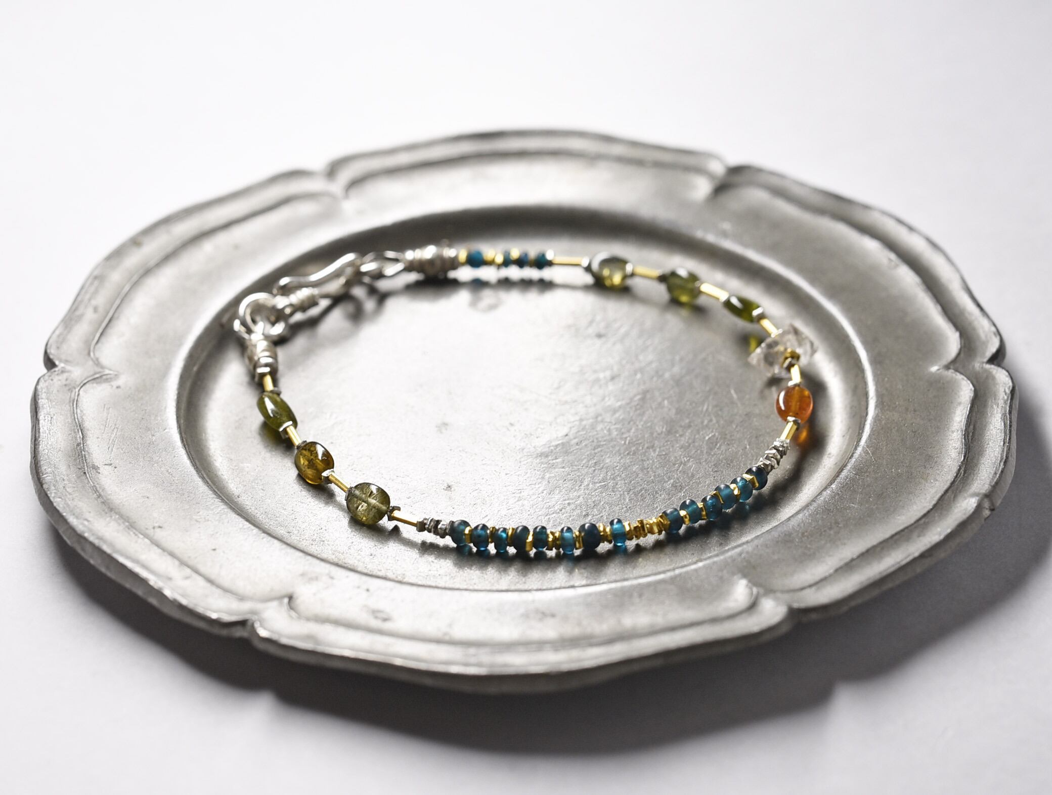 ハーキマーダイヤモンド、トルマリン、インディゴブルービーズ、カレンシルバービーズを繋いだブレスです。