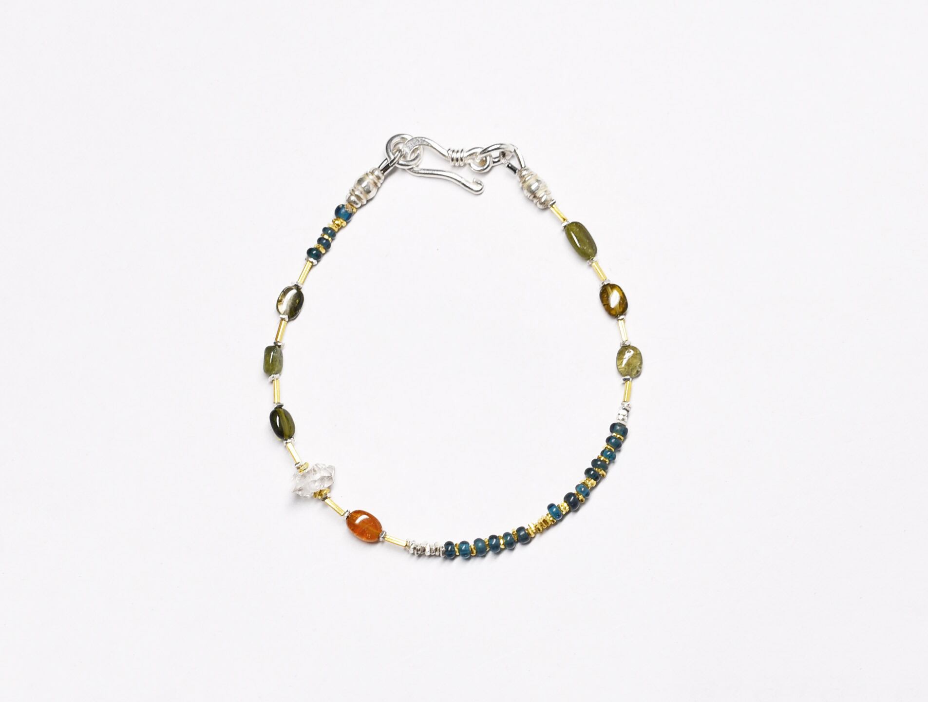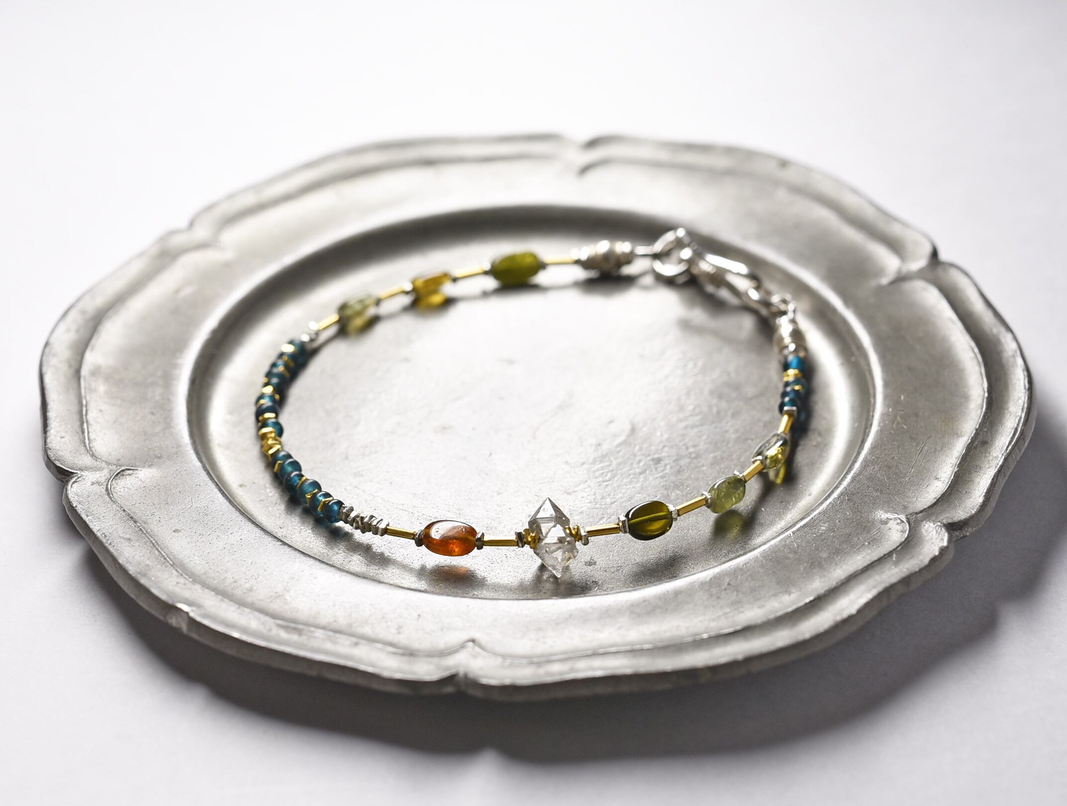 ハーキマーダイヤモンド、トルマリン、インディゴブルービーズ、カレンシルバービーズのブレス
