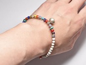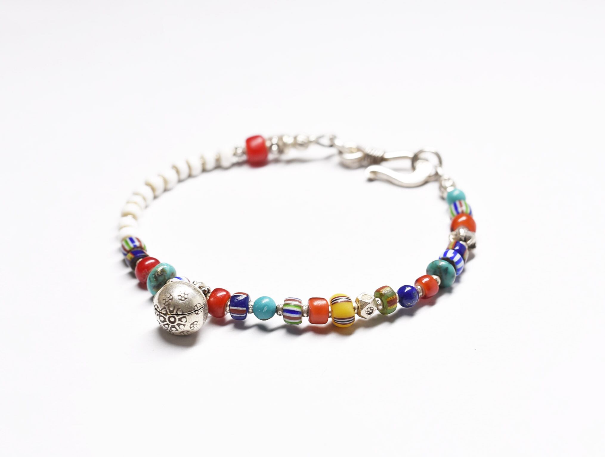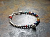カレンシルバーの鈴をトップに、色んなベネチア産のアンティークビーズや天然石、カレンシルバービーズをミックスした賑やかなブレスです。