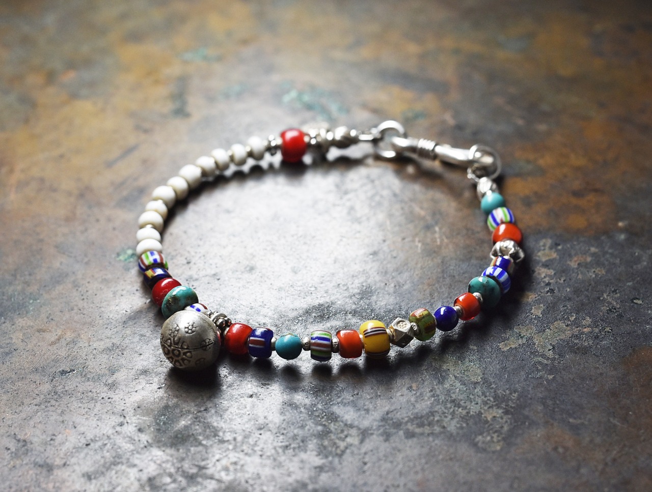 カレンシルバーの鈴とクレイジーミックスアンティークベネチアビーズのブレス