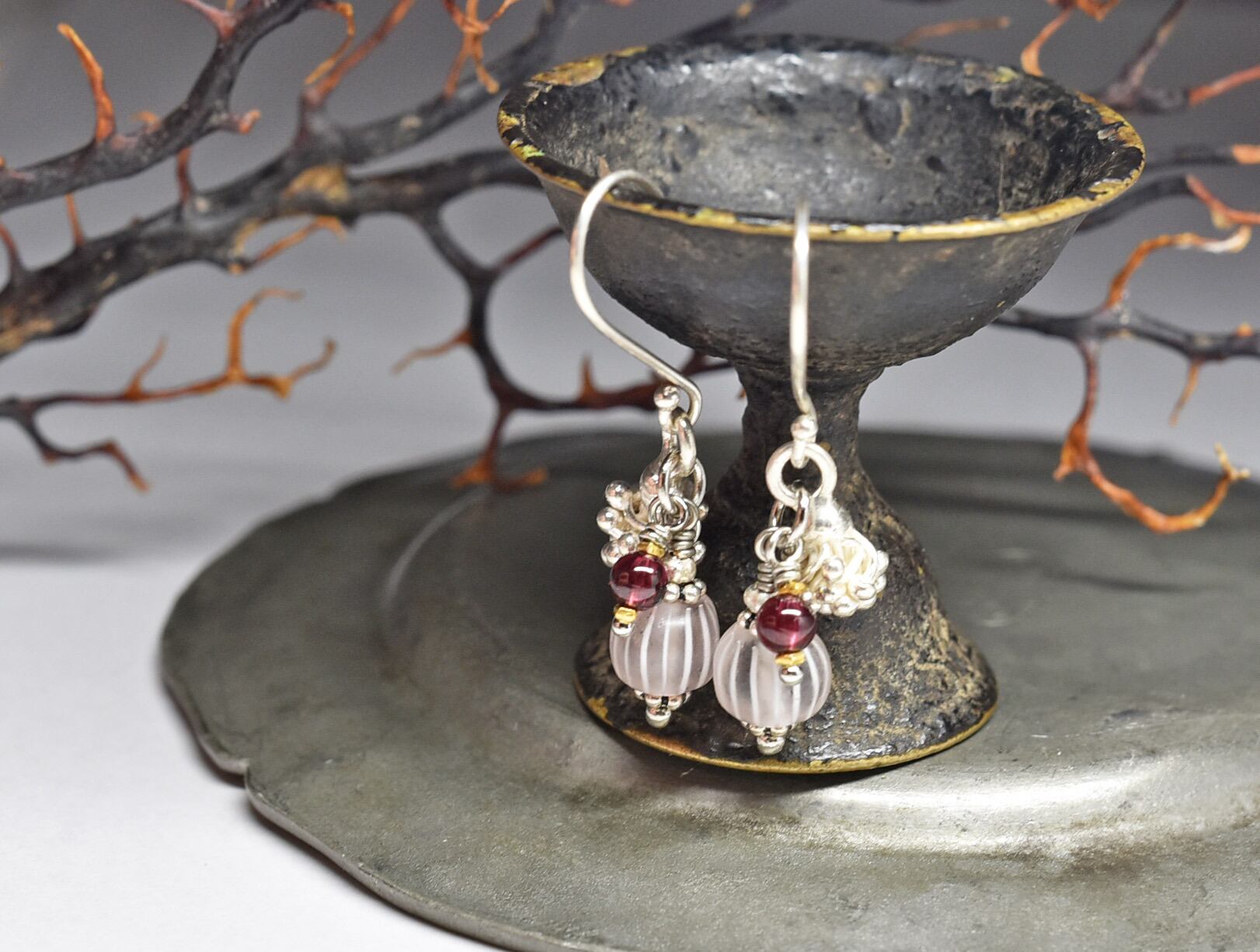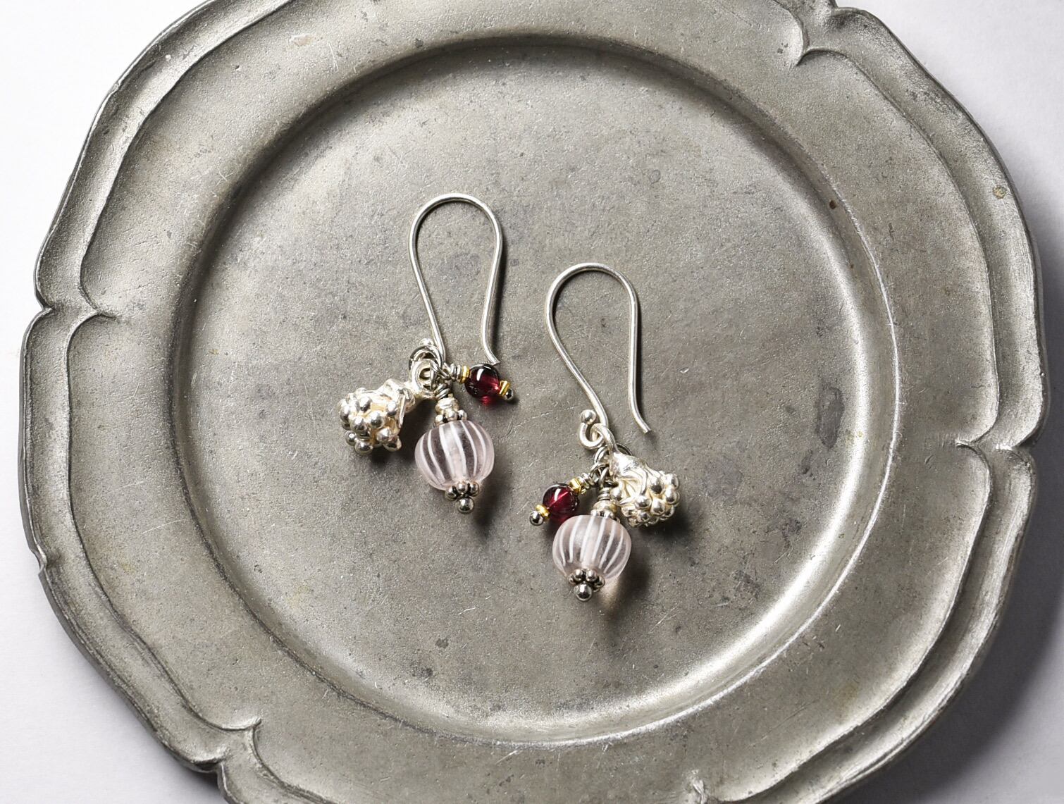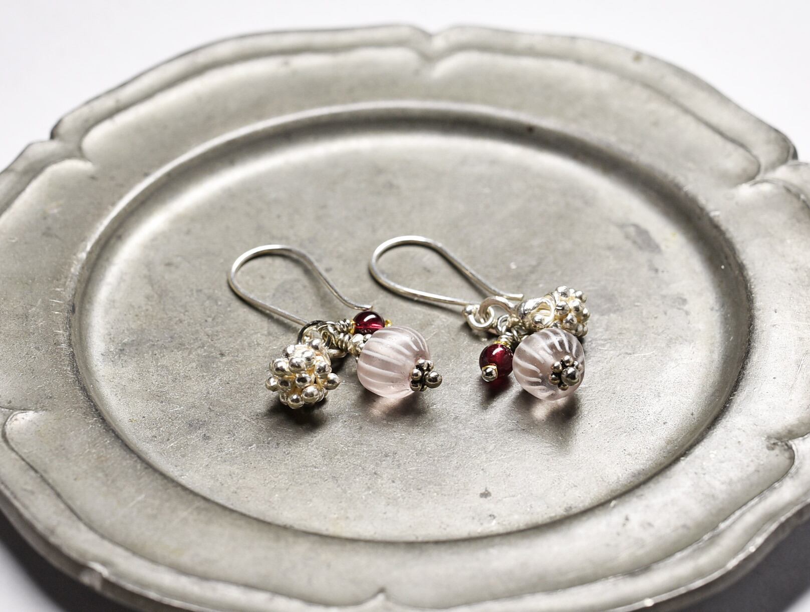 蕾カレンシルバーとグーズベリー、ガーネットのピアス