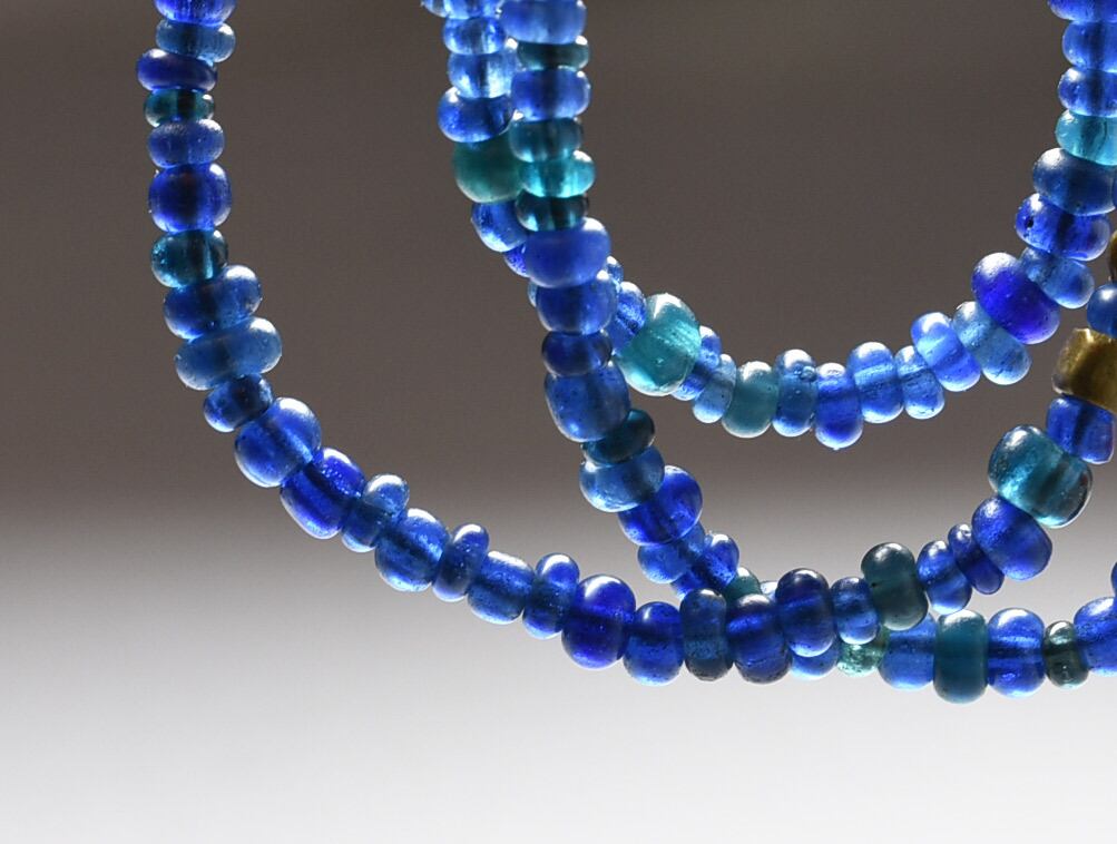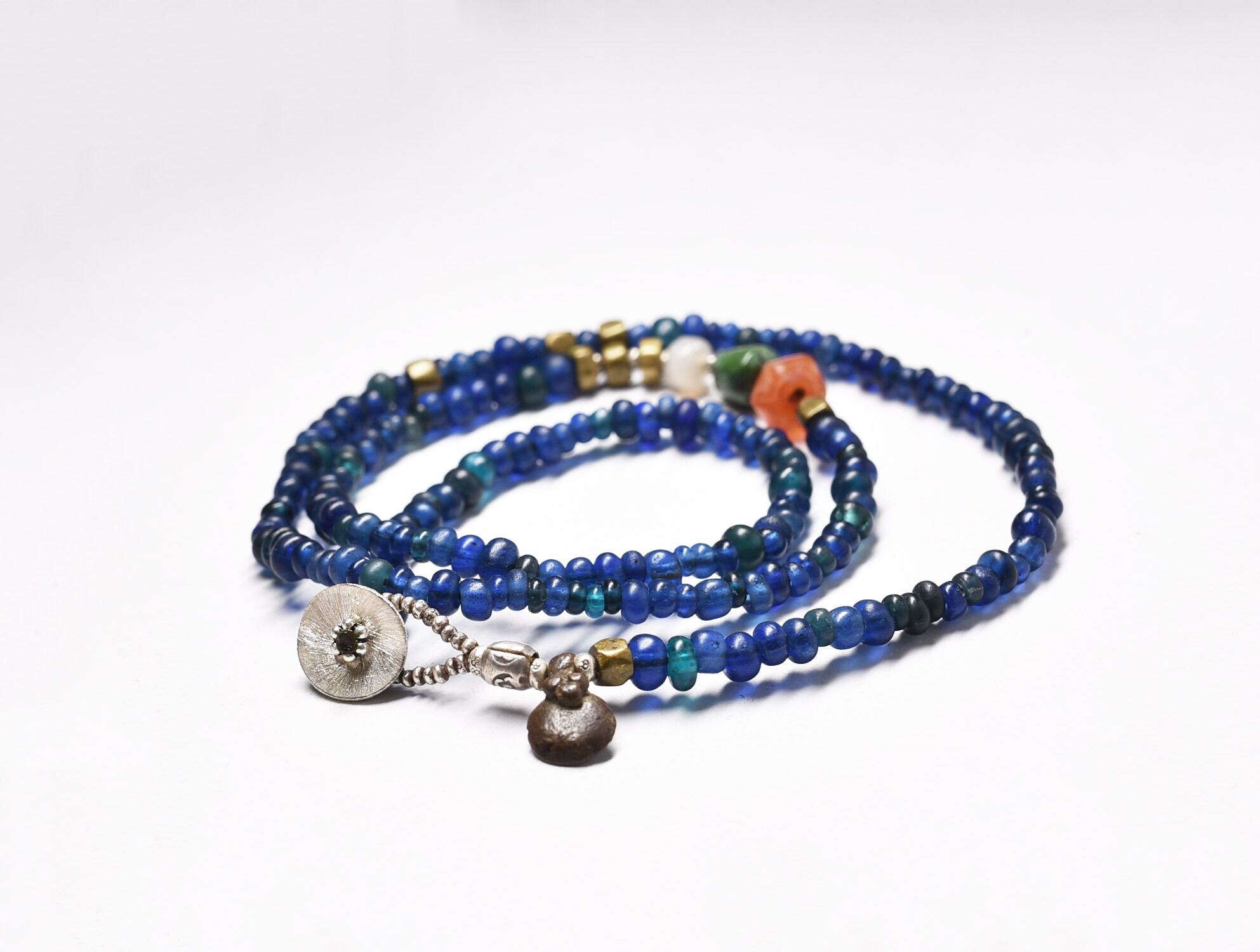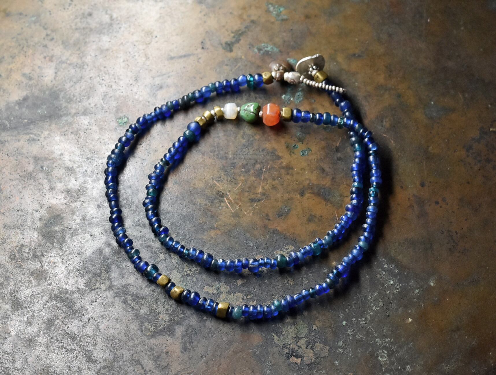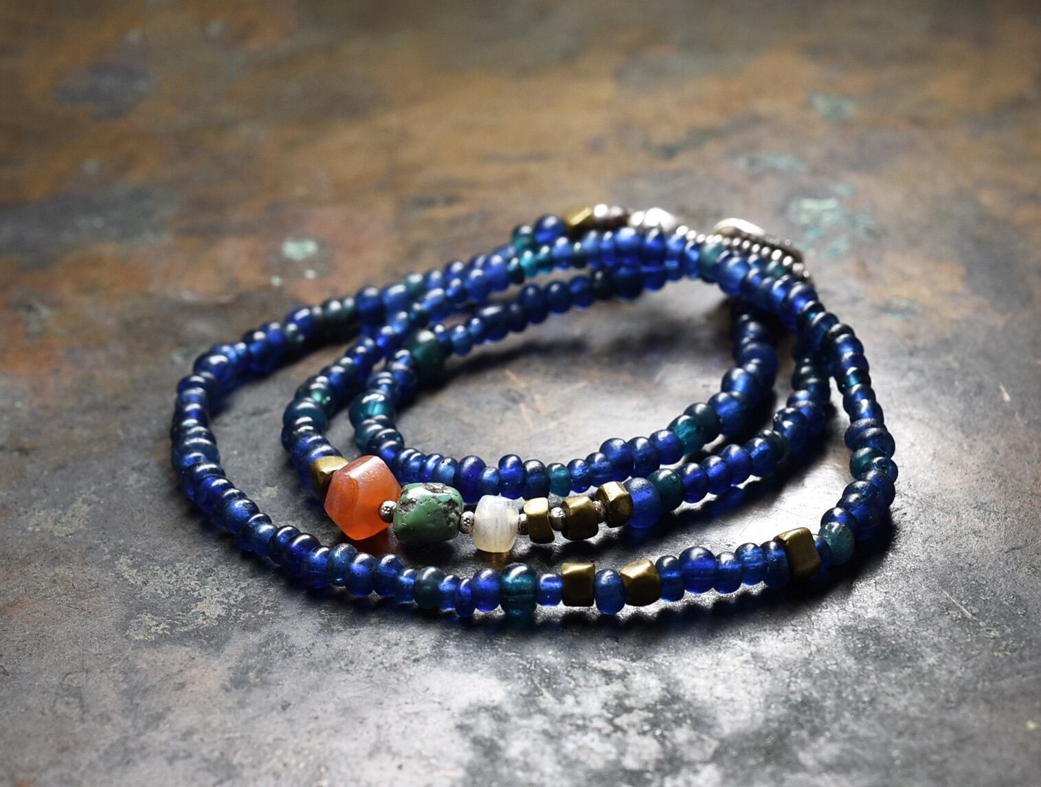 ダークブルーのビーズはインドパシフィックビーズと呼ばれるアンティークビーズです。