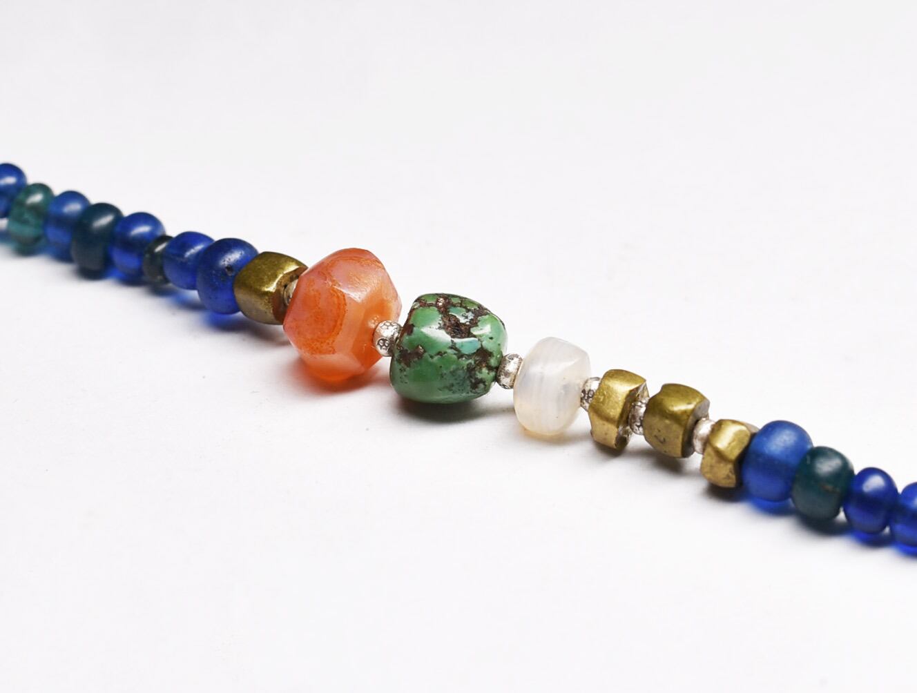 ダークブルーミックスアンティークビーズと、oldチベタンターコイズ、oldカーネリアン、古代瑪瑙のネックレス