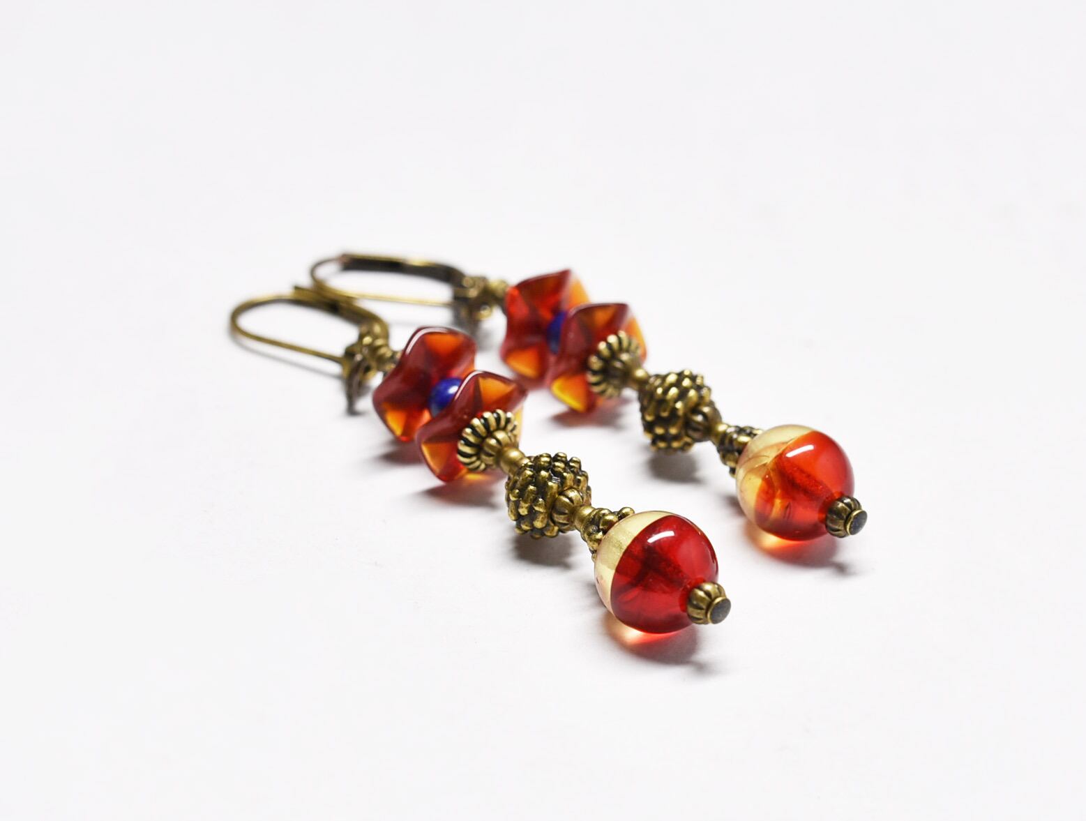 真っ赤な朝顔のようなビーズは日本のヴィンテージビーズです。