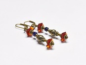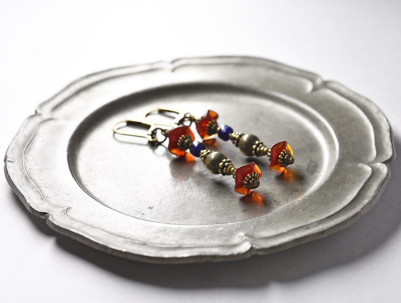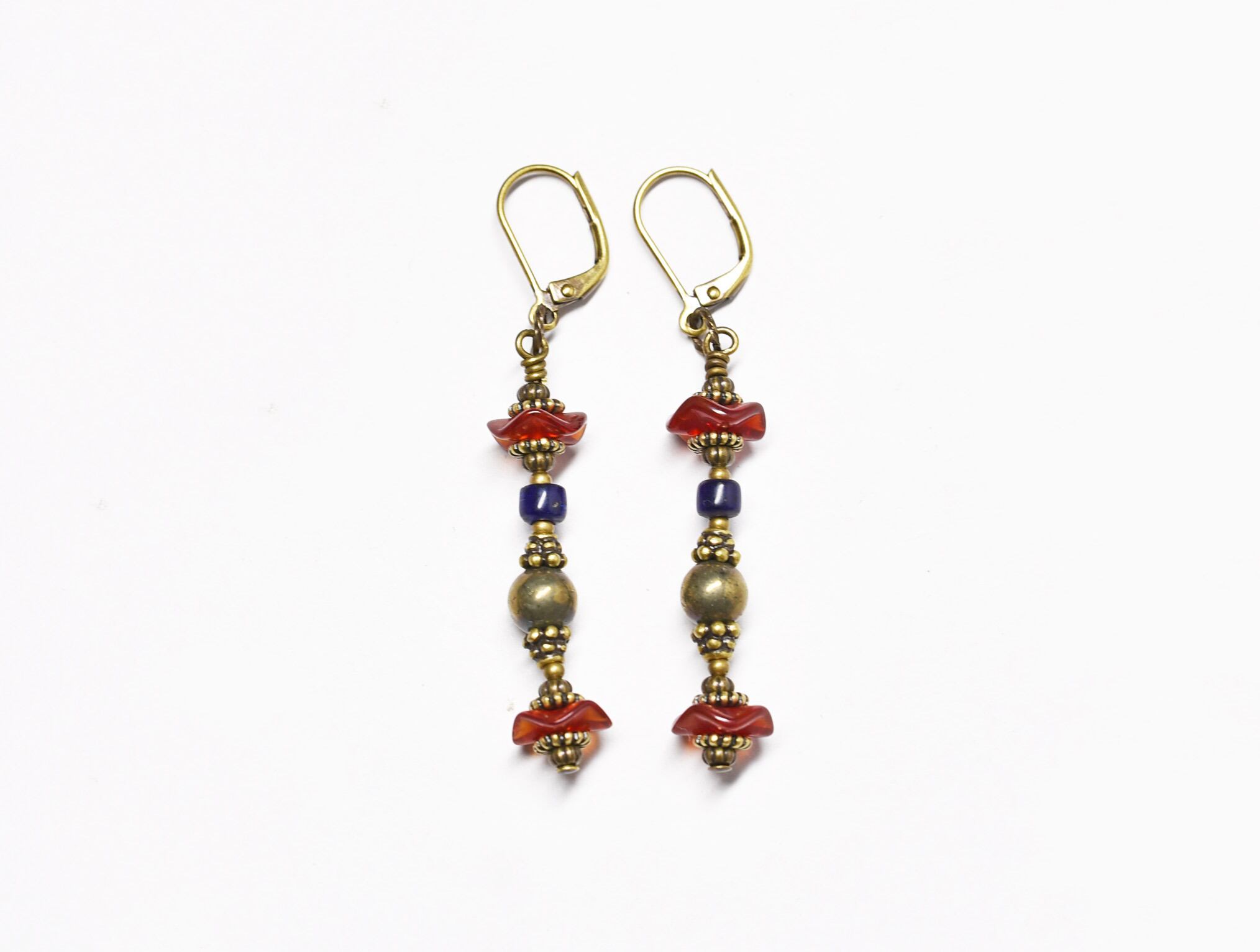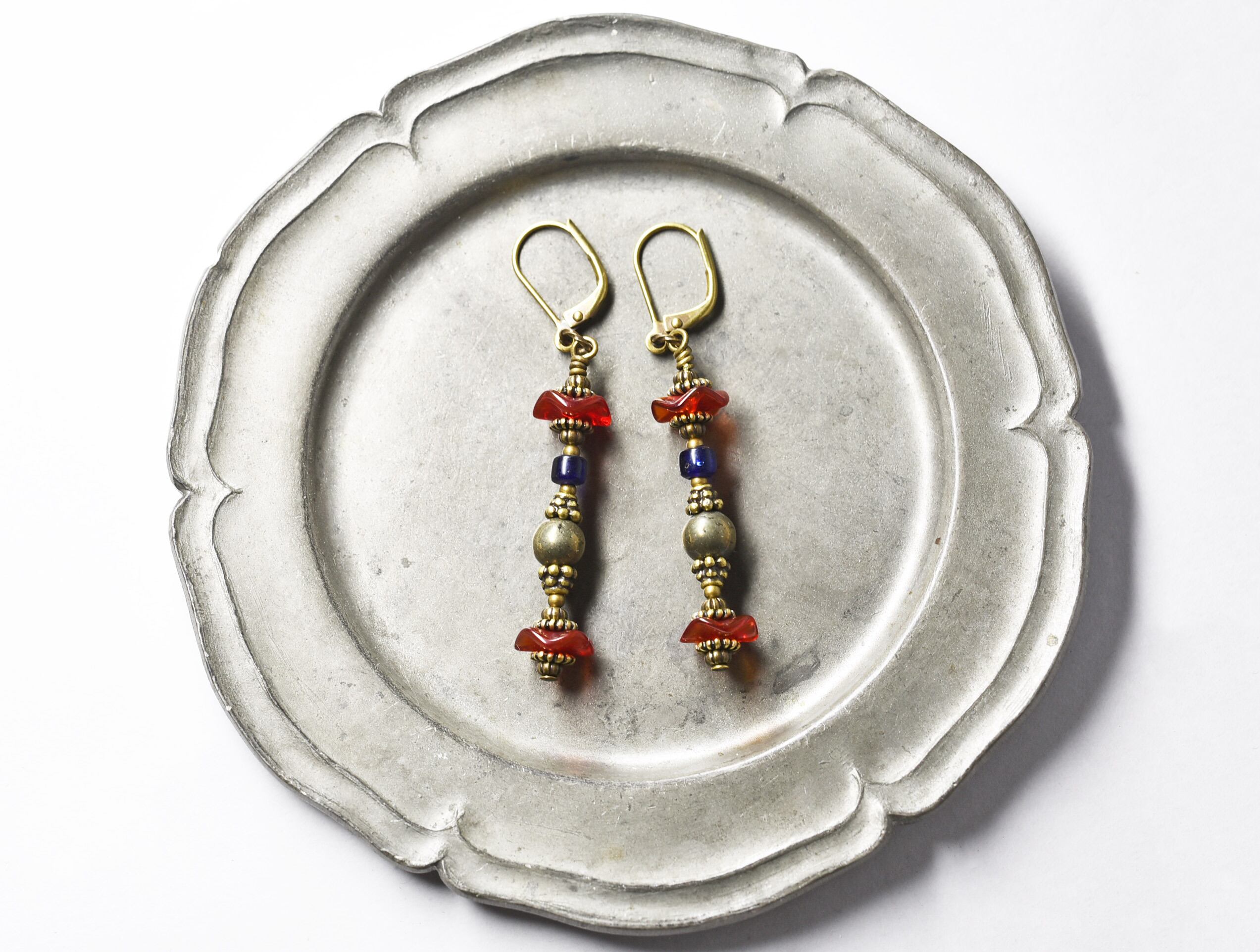日本のヴィンテージビーズとパイライト、瑠璃色のアンティークビーズを繋げたピアスです。