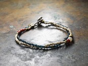 捻じって着けるとさらに表情が出ます。華奢なビーズながらも存在感を放つ渋めなブレスです。