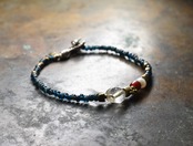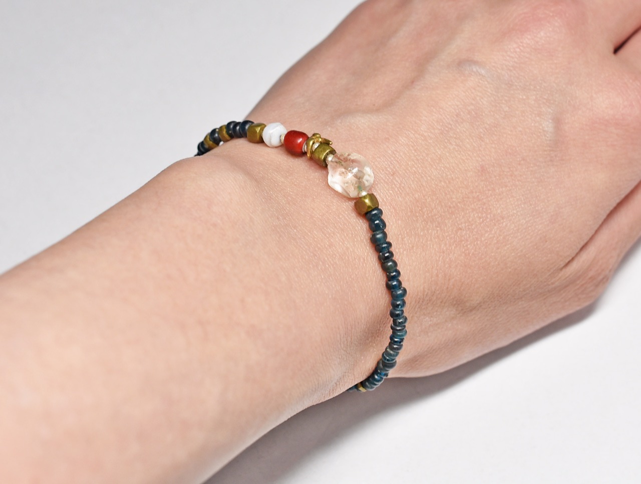 古代水晶と古代瑪瑙、金赤ホワイトハーツ、インディゴブルービーズ、oldオリッサブラスのブレス