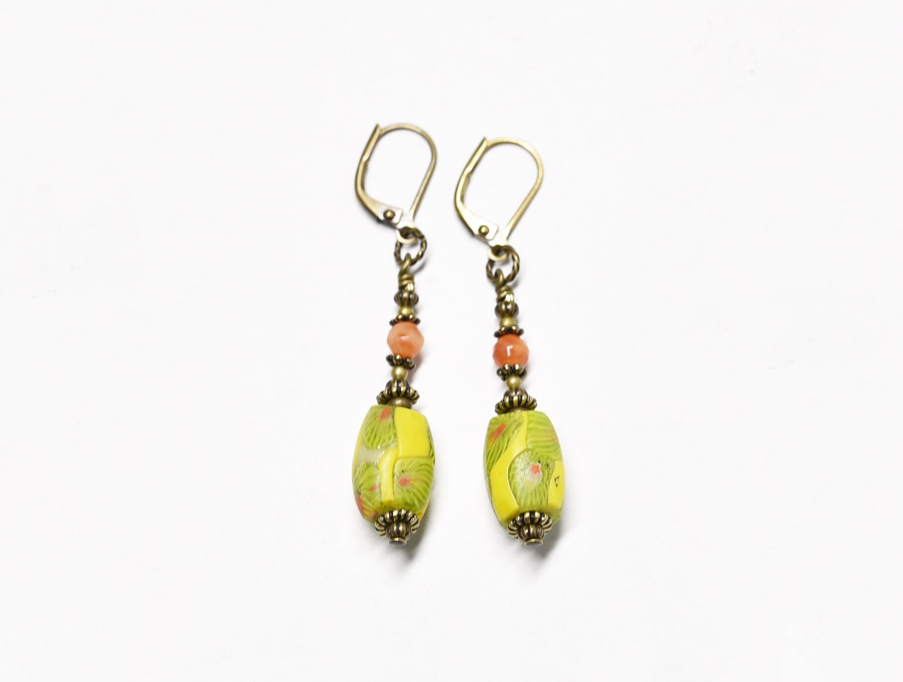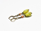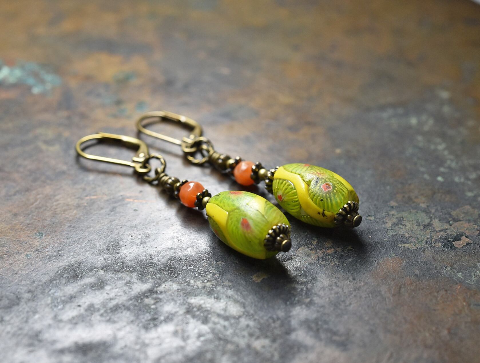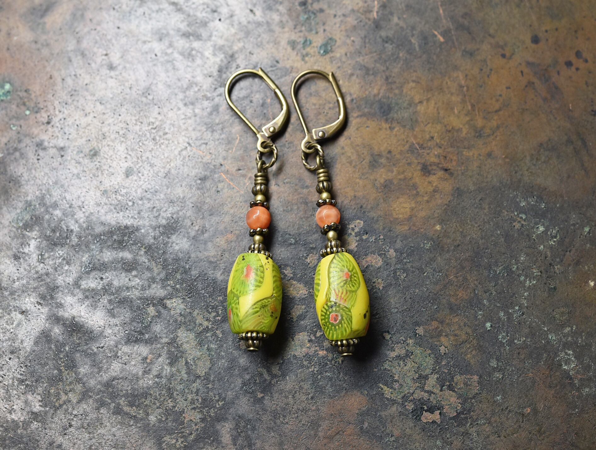 ベネチアアンティークレモンイエローミルフィオリとファイアーアゲートのピアス