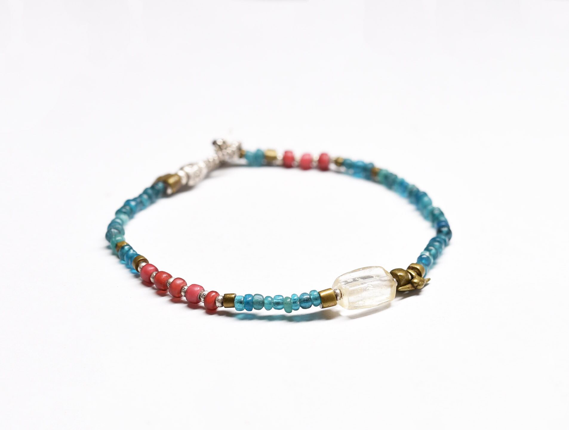 少しポップな色合いの中に、アンティークビーズの魅力を楽しめる身に着けていてわくわくするようなブレスです。