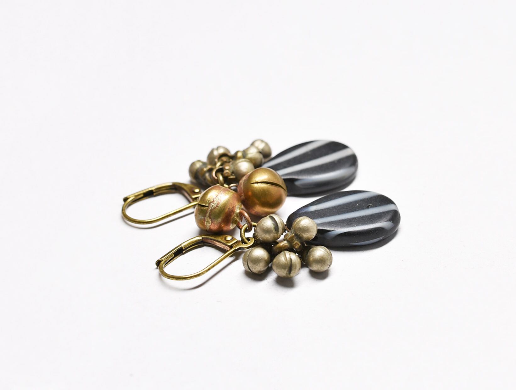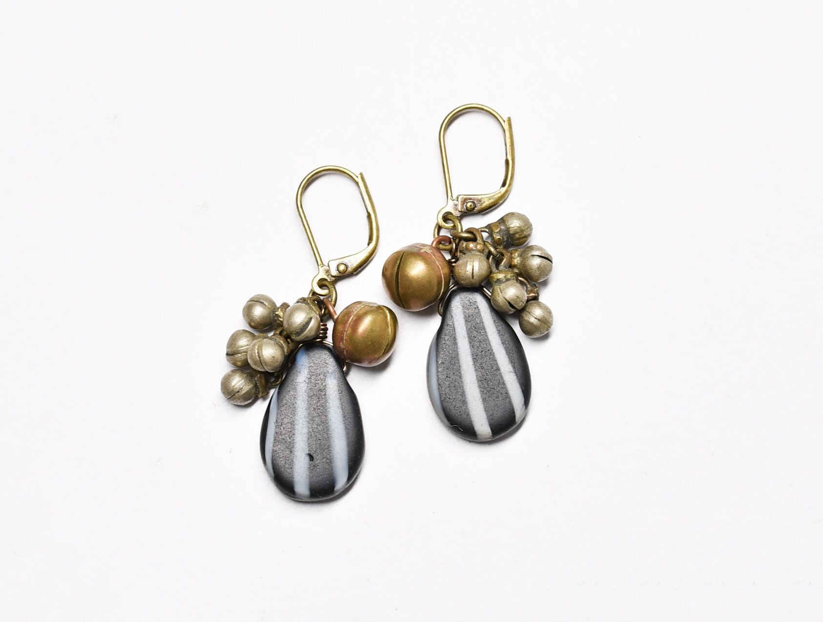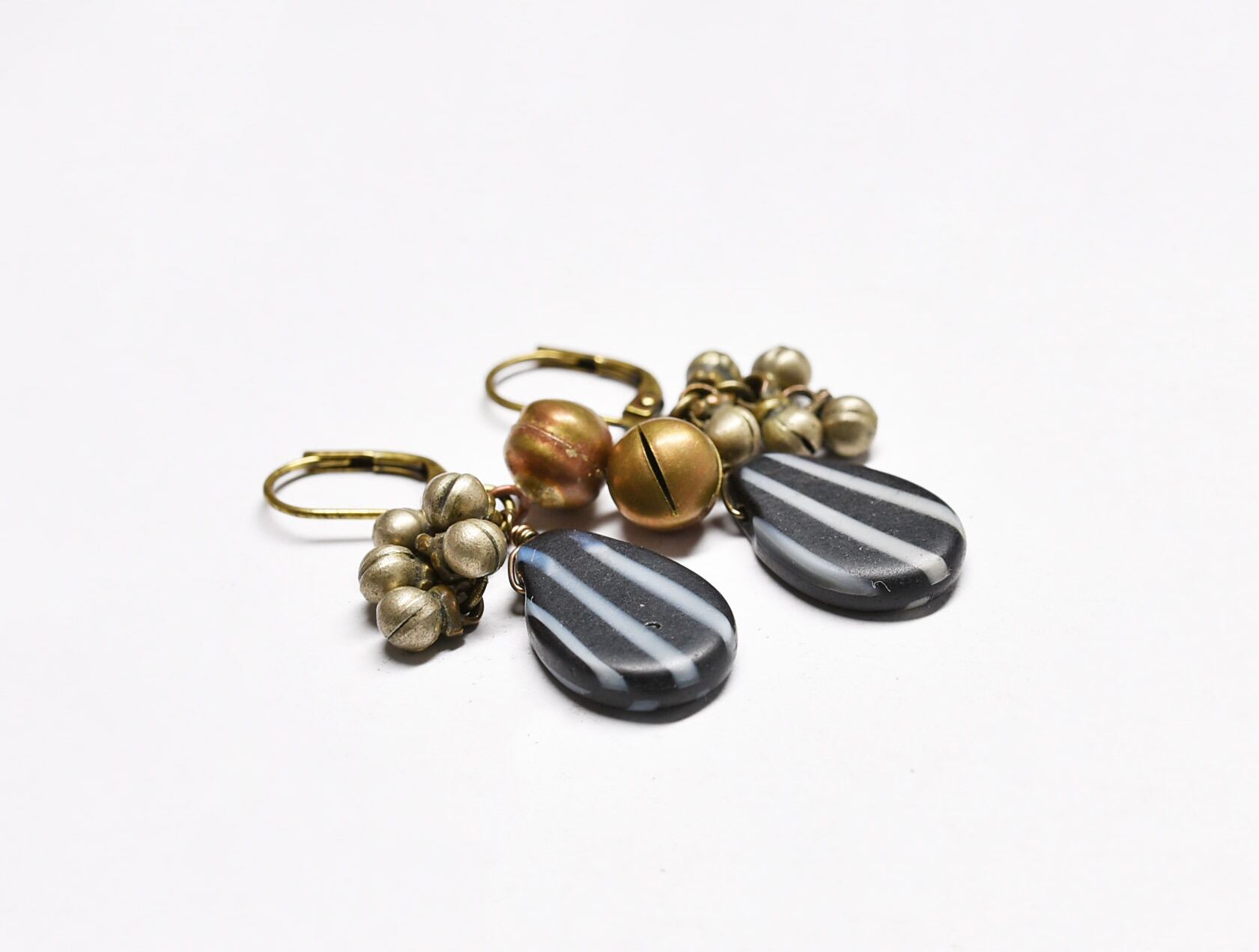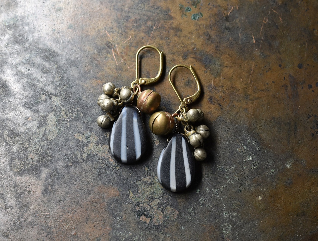 ウエディングビーズと呼ばれるボヘミアのアンティークビーズと鈴を繋いだピアスです。