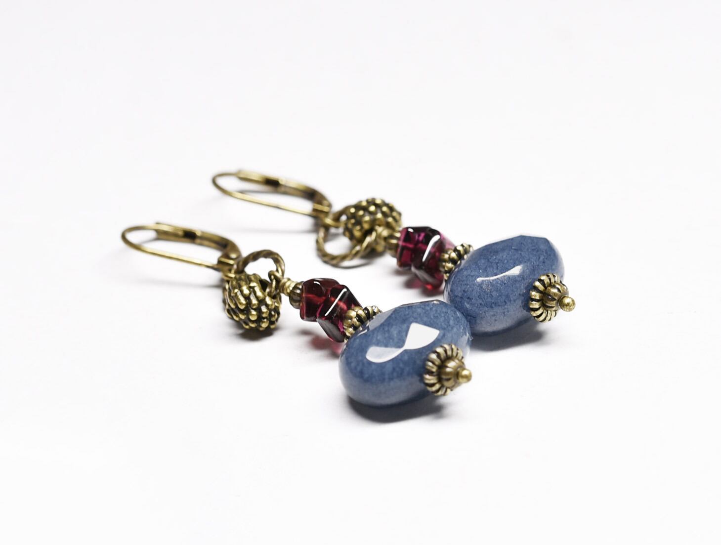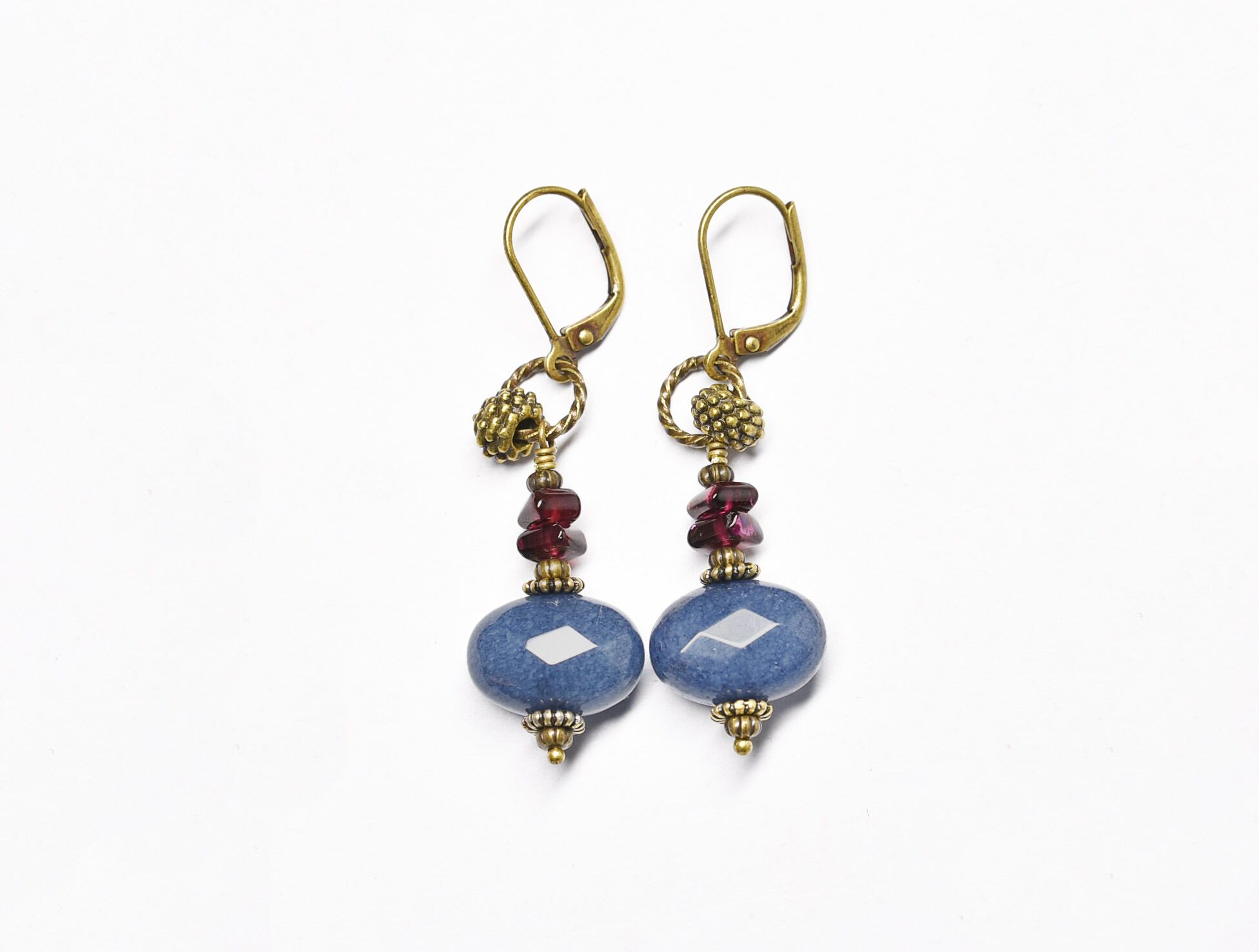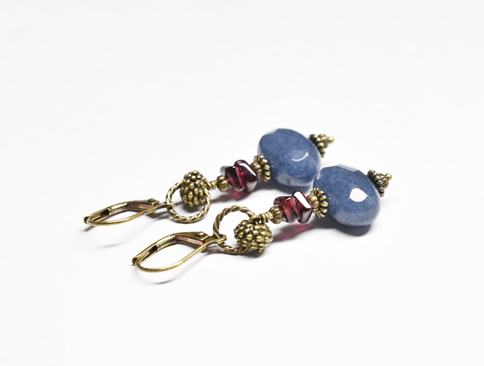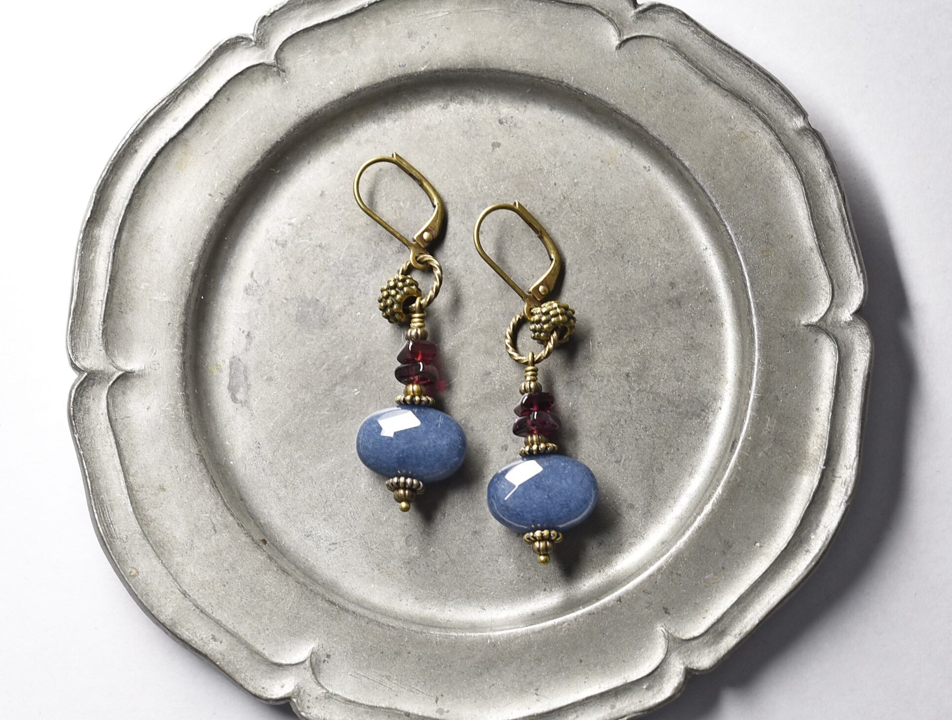 サファイアアゲートとガーネットを少し大き目なリングで繋いだピアスです。