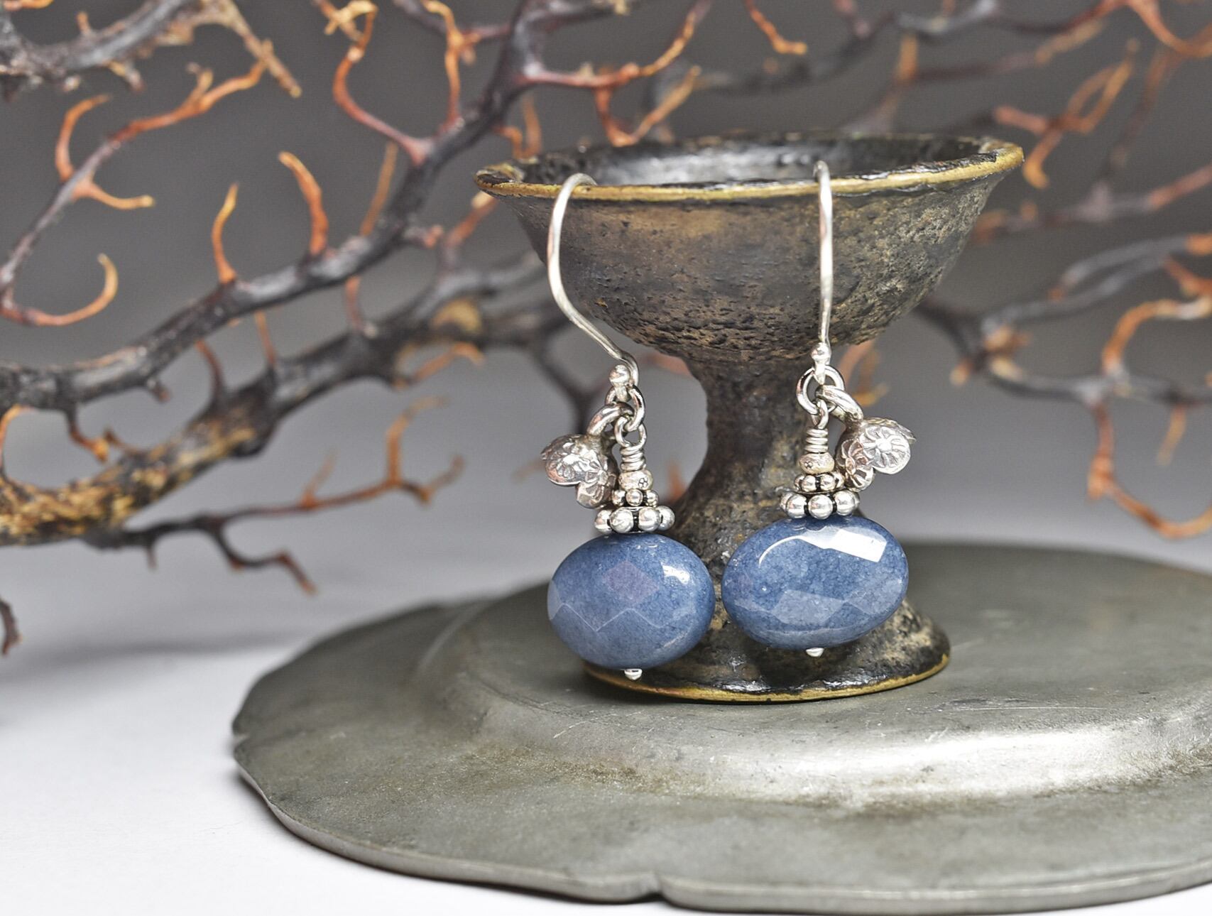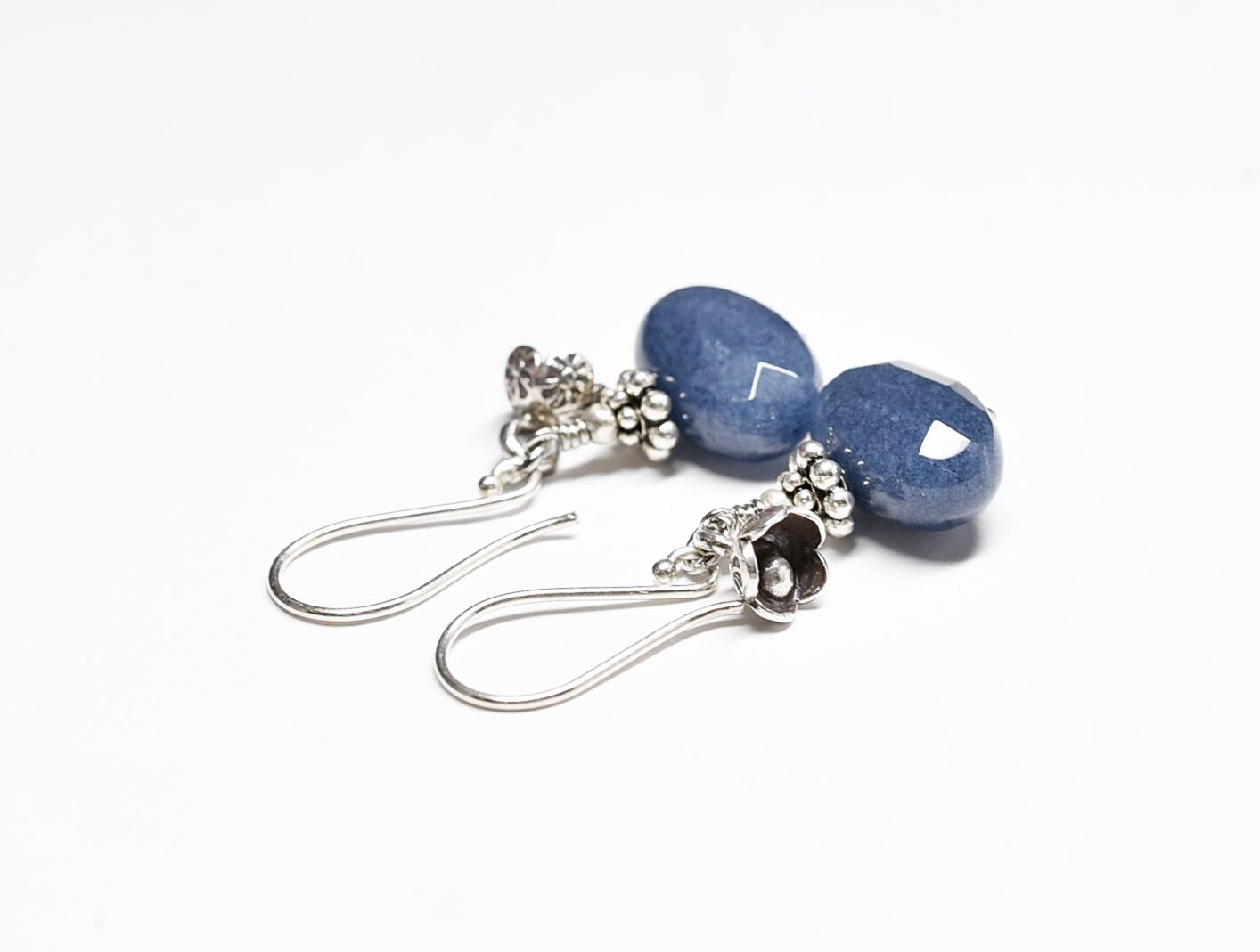 サファイアアゲートと小さなカレンシルバーのお花ピアス(再販)