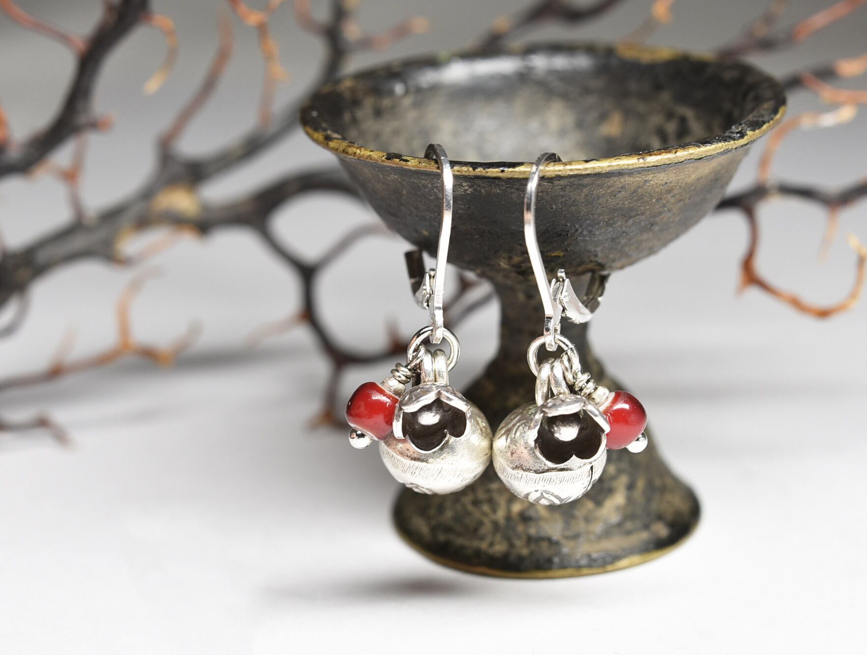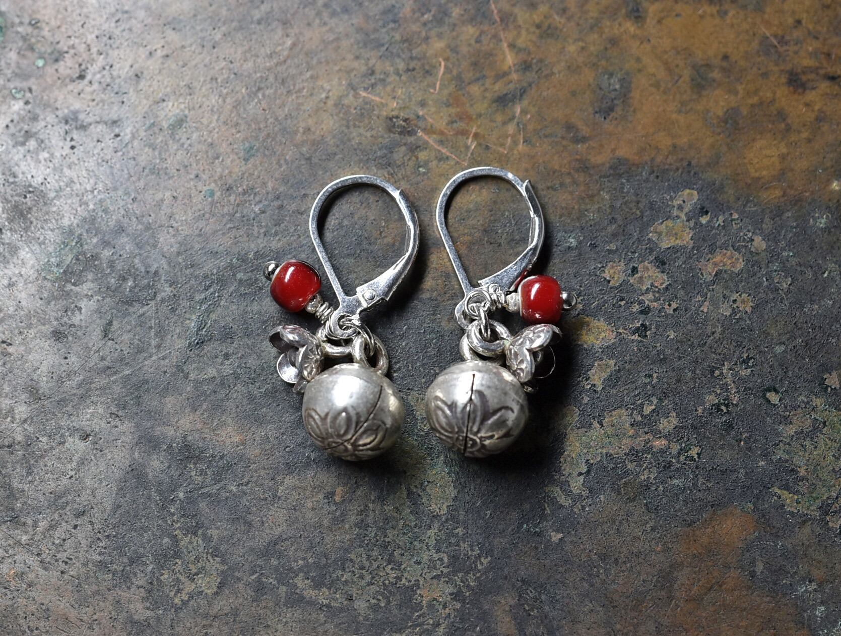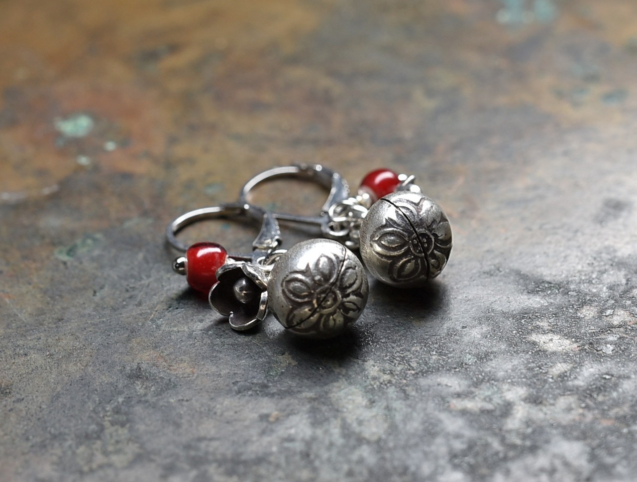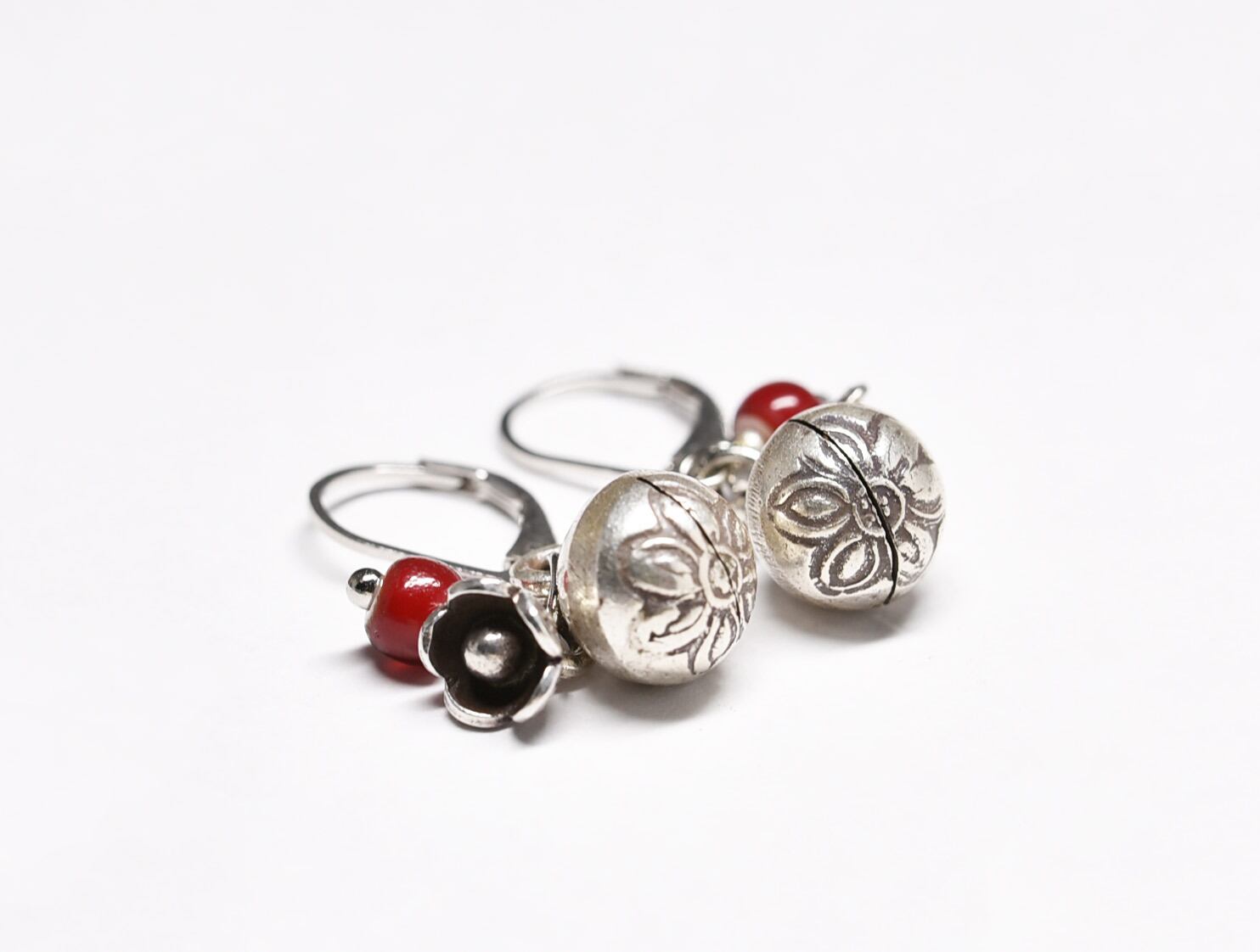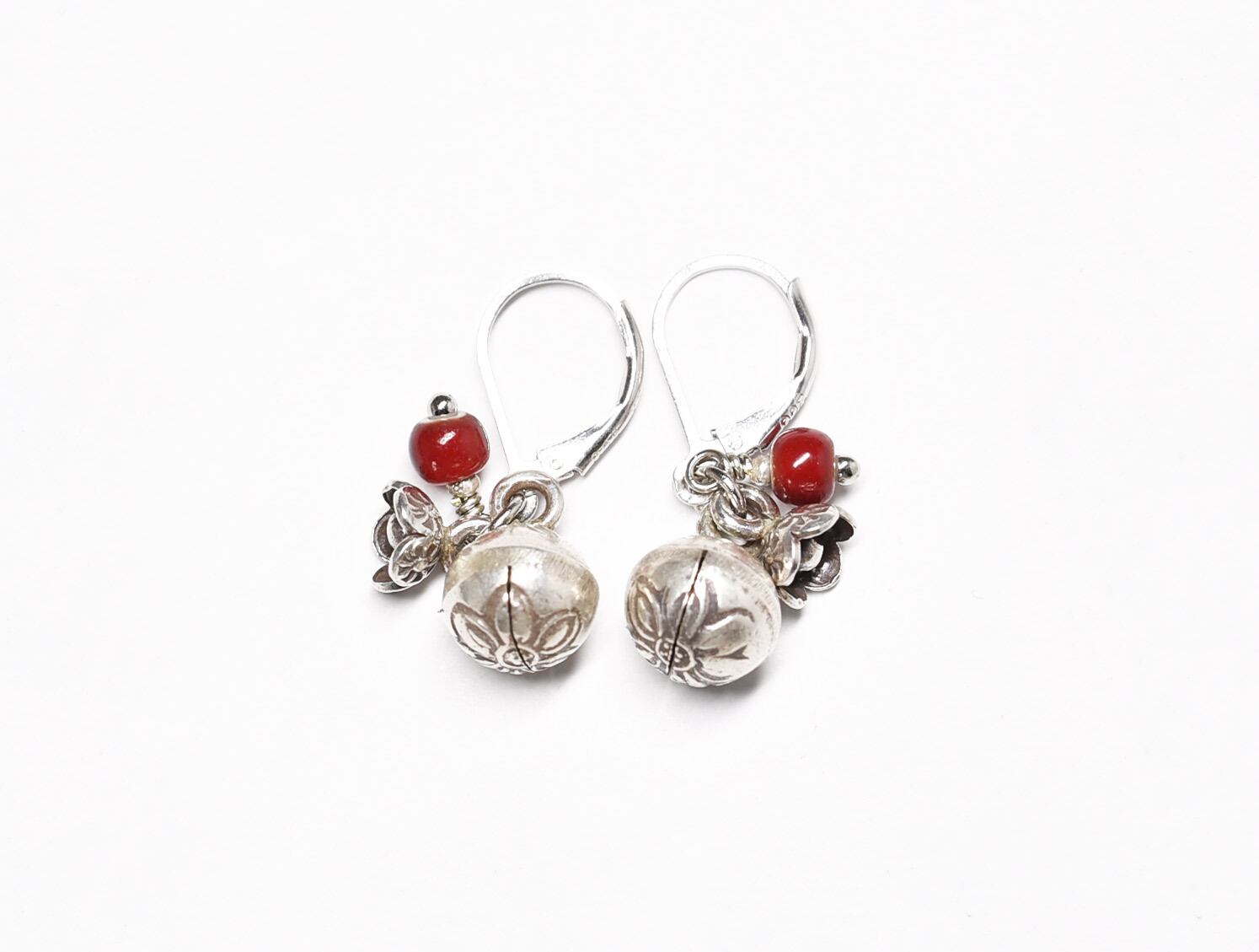 コロンとした可愛らしい鈴にお花を添えたやや小ぶりのピアスです。
